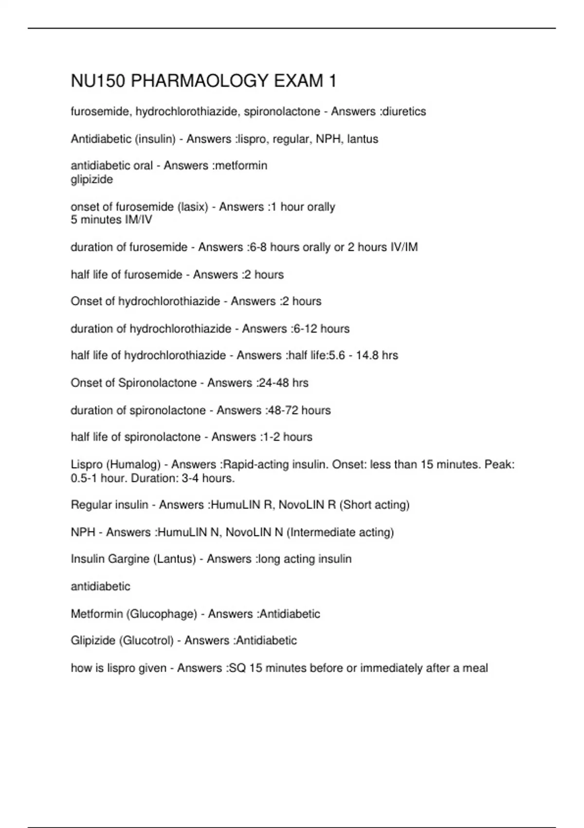 Antidiabetic (insulin) - Answers :lispro, regular, NPH, lantus