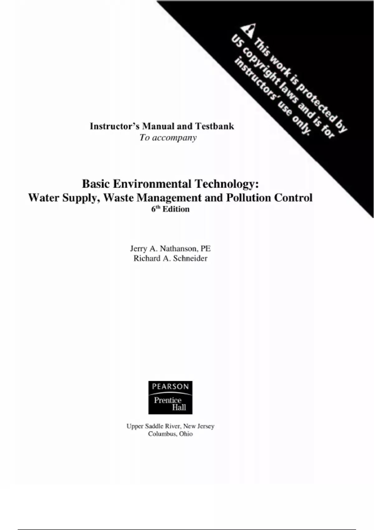 Solutions & Test Bank - Basic Environmental Technology Water Supply, Waste Management and Pollution Control 6th Edition by Jerry Nathanson, All Chapters 1-14, Graded A+