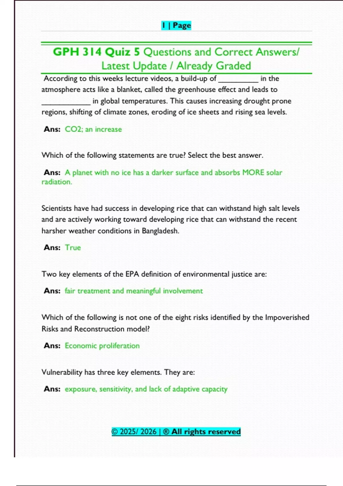 GPH 314 Quiz 5 Questions and Correct Answers/