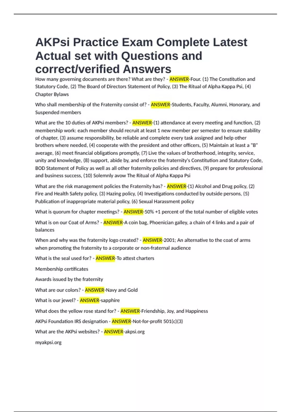 Statutory Code, (2) The Board of Directors Statement of Policy, (3) The Ritual of Alpha Kappa Psi, (4)