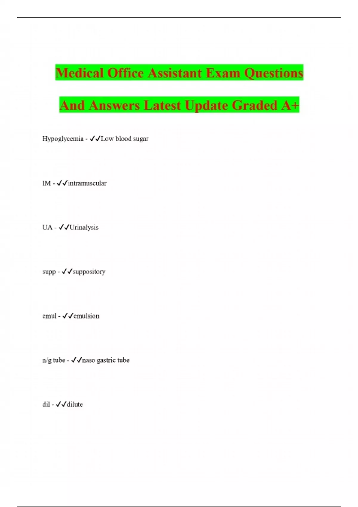 Medical Office Assistant Exam Questions And Answers Latest Update Graded A+