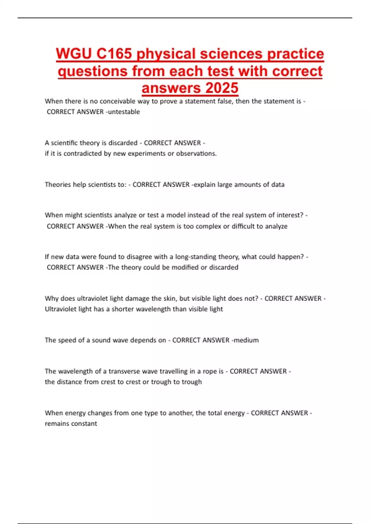 WGU C165 physical sciences practice