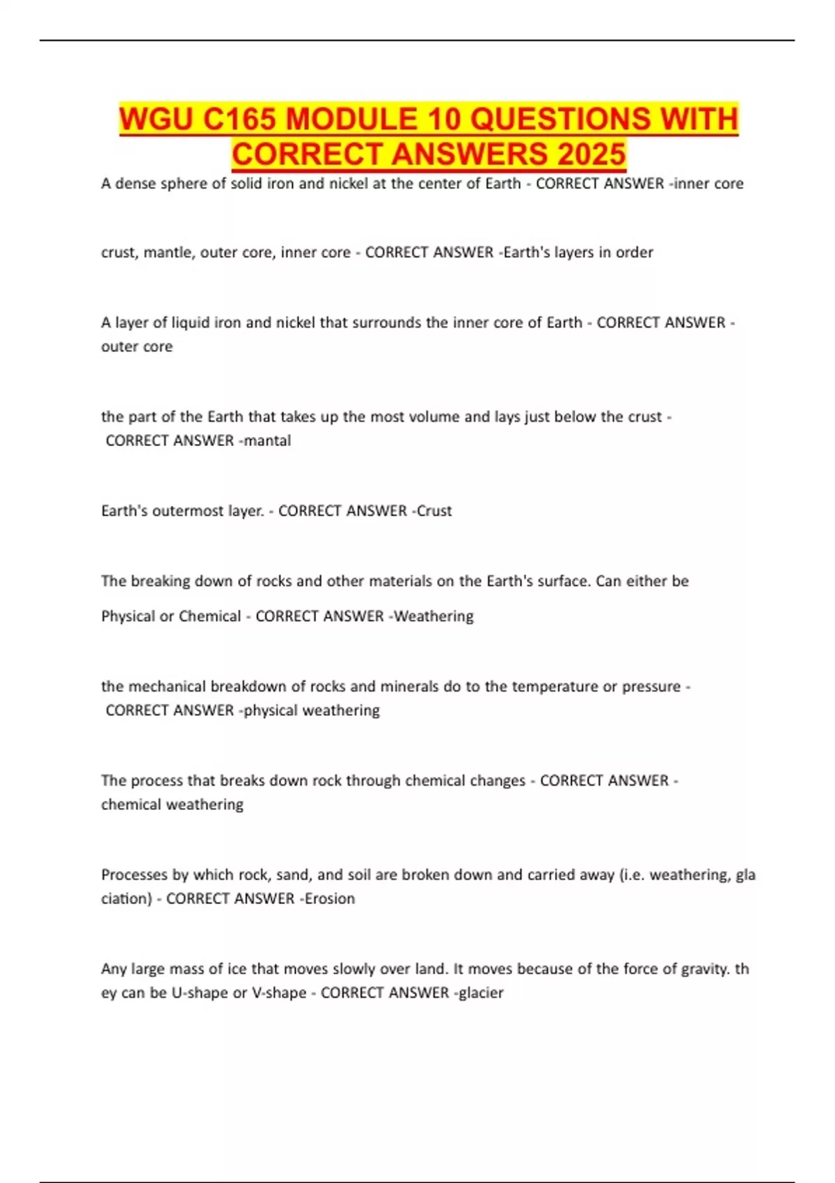 CORRECT ANSWERS 2025