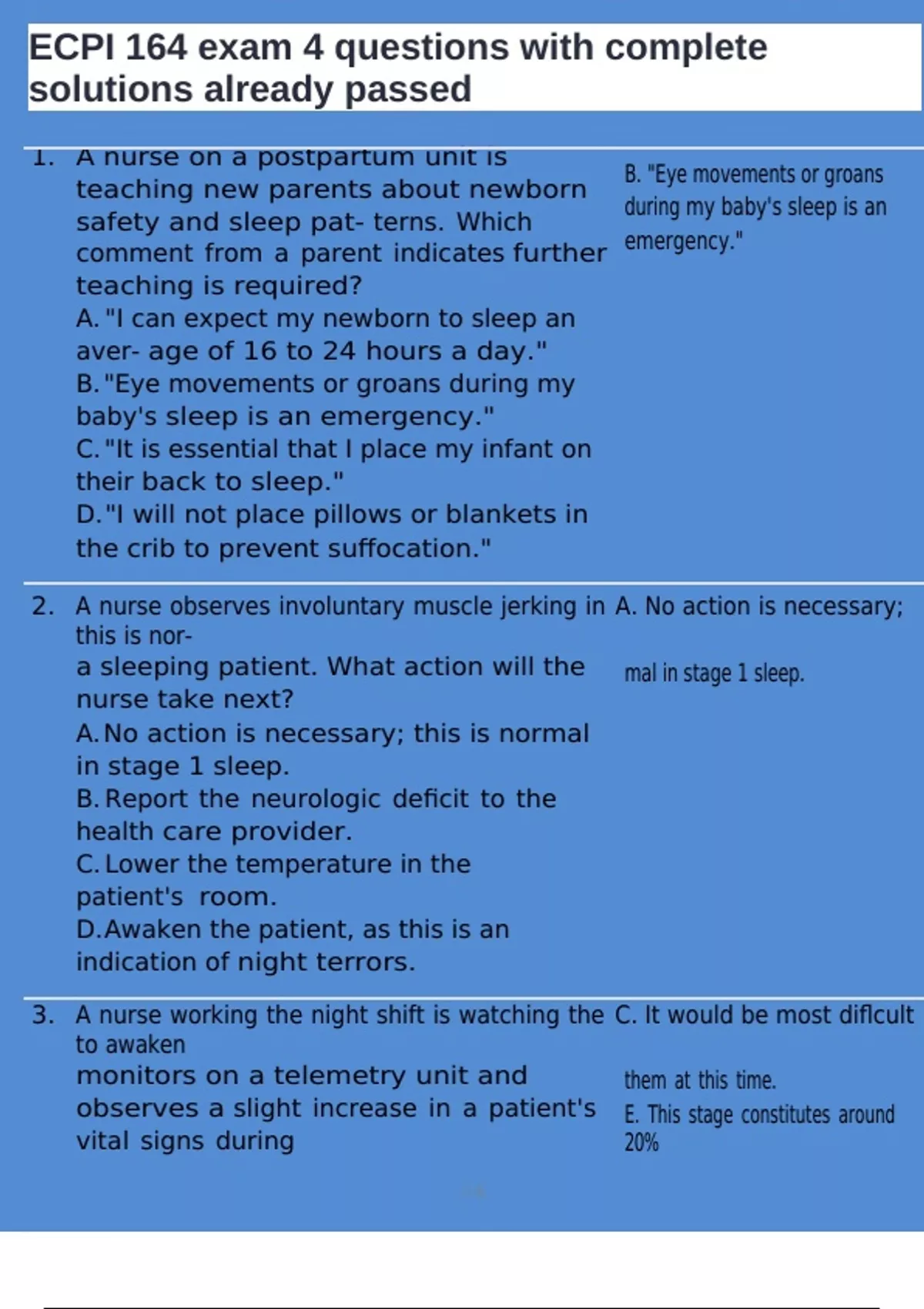 sleep. Which of these points will the nurse cor- to 25% of total sleep.