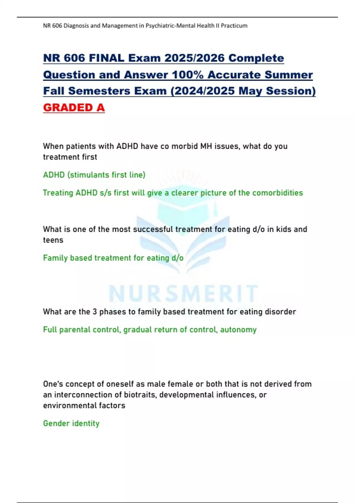 NR 606 FINAL Exam 2025/2026 Complete Question and Answer 100% Accurate Summer Fall Semesters Exam (2024/2025 May Session) GRADED A