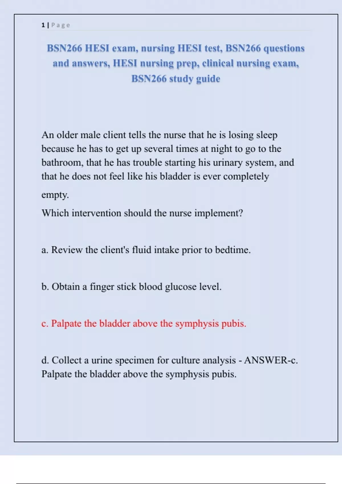BSN266 HESI exam, nursing HESI test, BSN266 questions and answers, HESI nursing prep, clinical nursing exam, BSN266 study guide