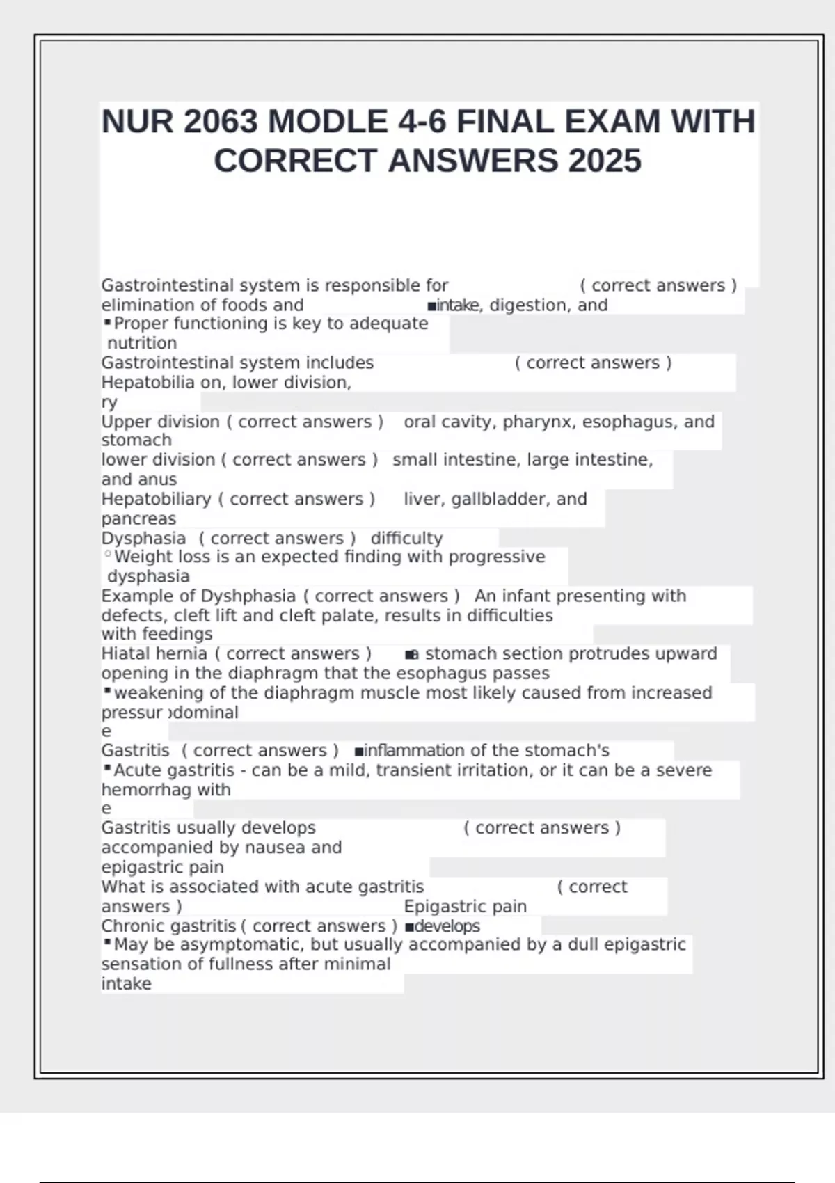 NUR 2063 MODLE 4-6 FINAL EXAM WITH