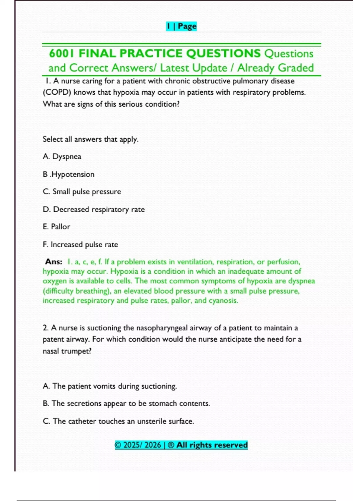 1. A nurse caring for a patient with chronic obstructive pulmonary disease
