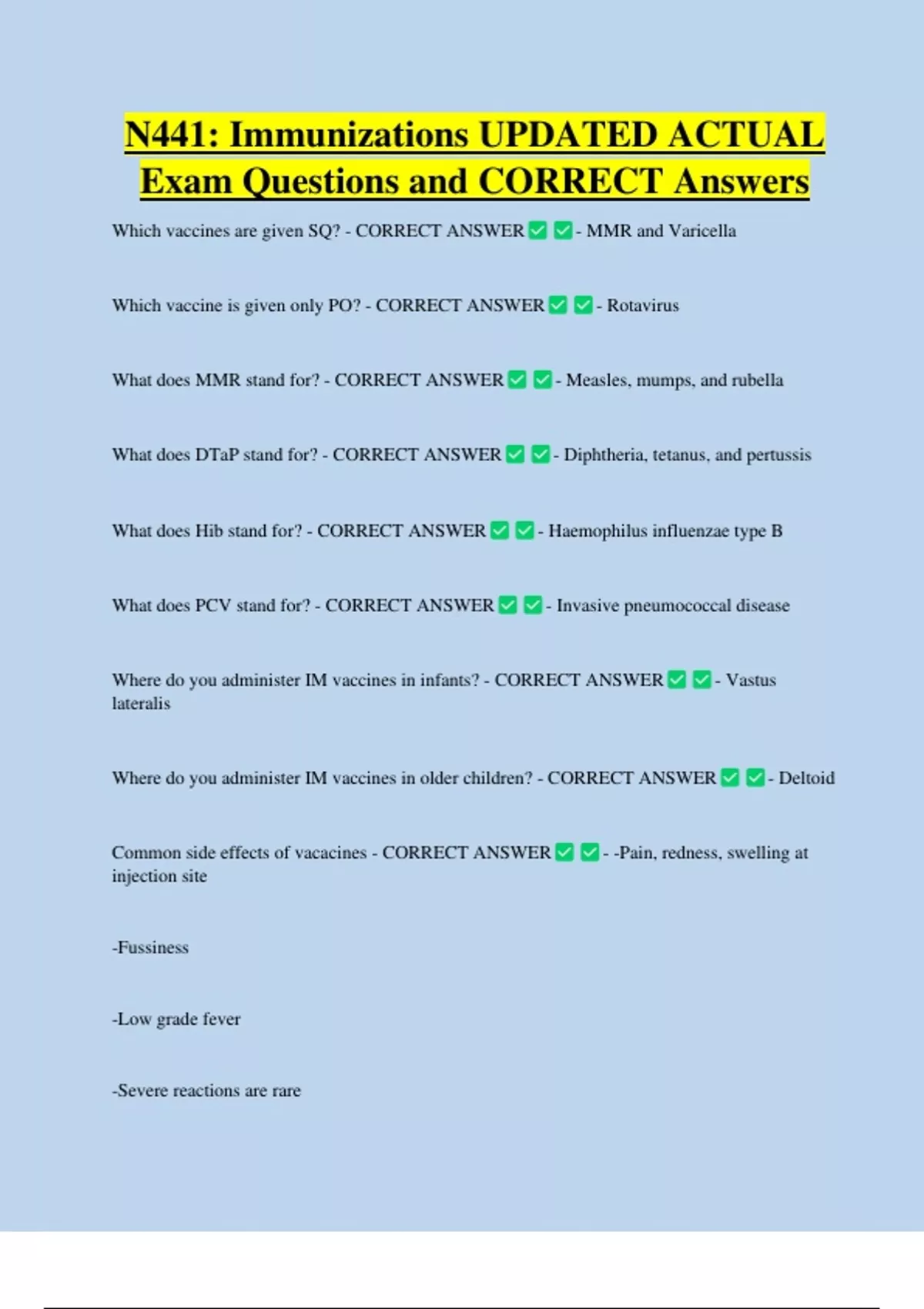 N441: Immunizations UPDATED ACTUAL Exam Questions and CORRECT Answers