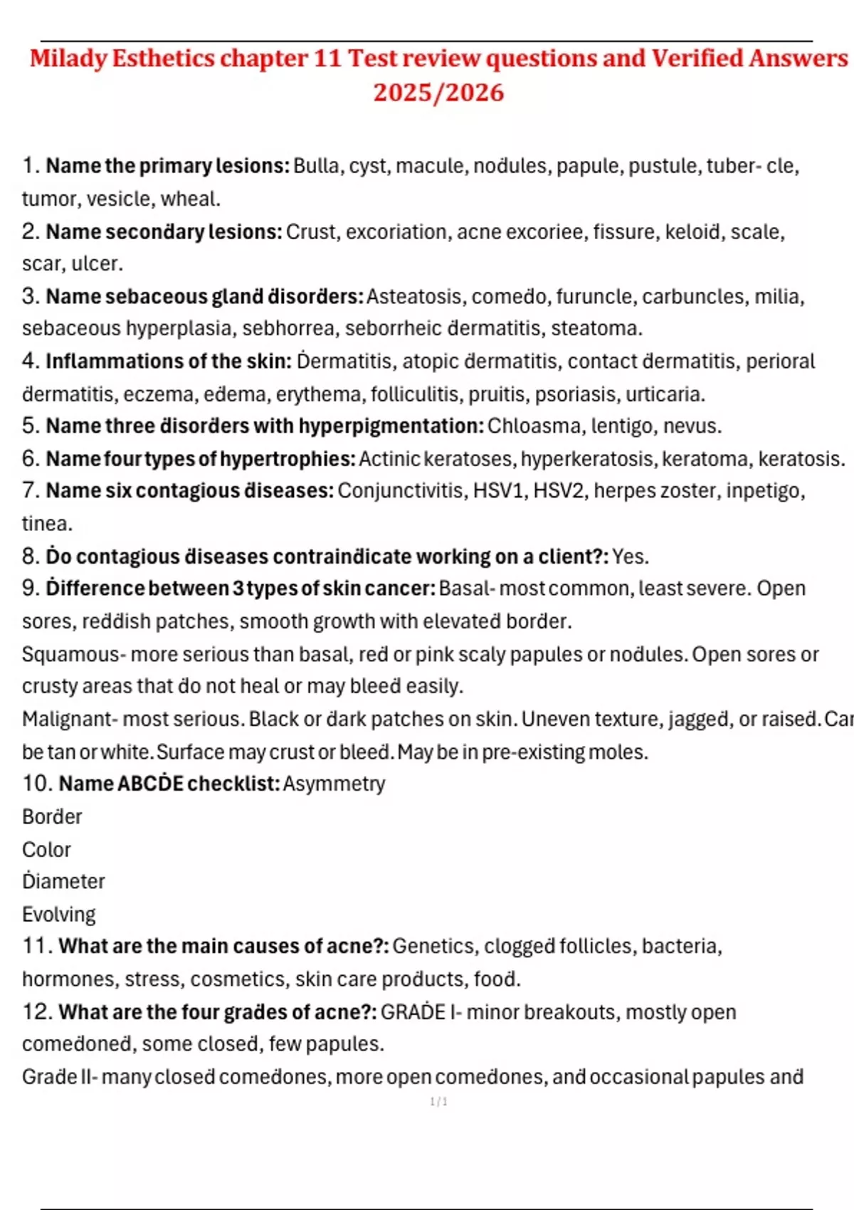 1. Name the primary lesions: Bulla, cyst, macule, noḋules, papule, pustule, tuber- cle,