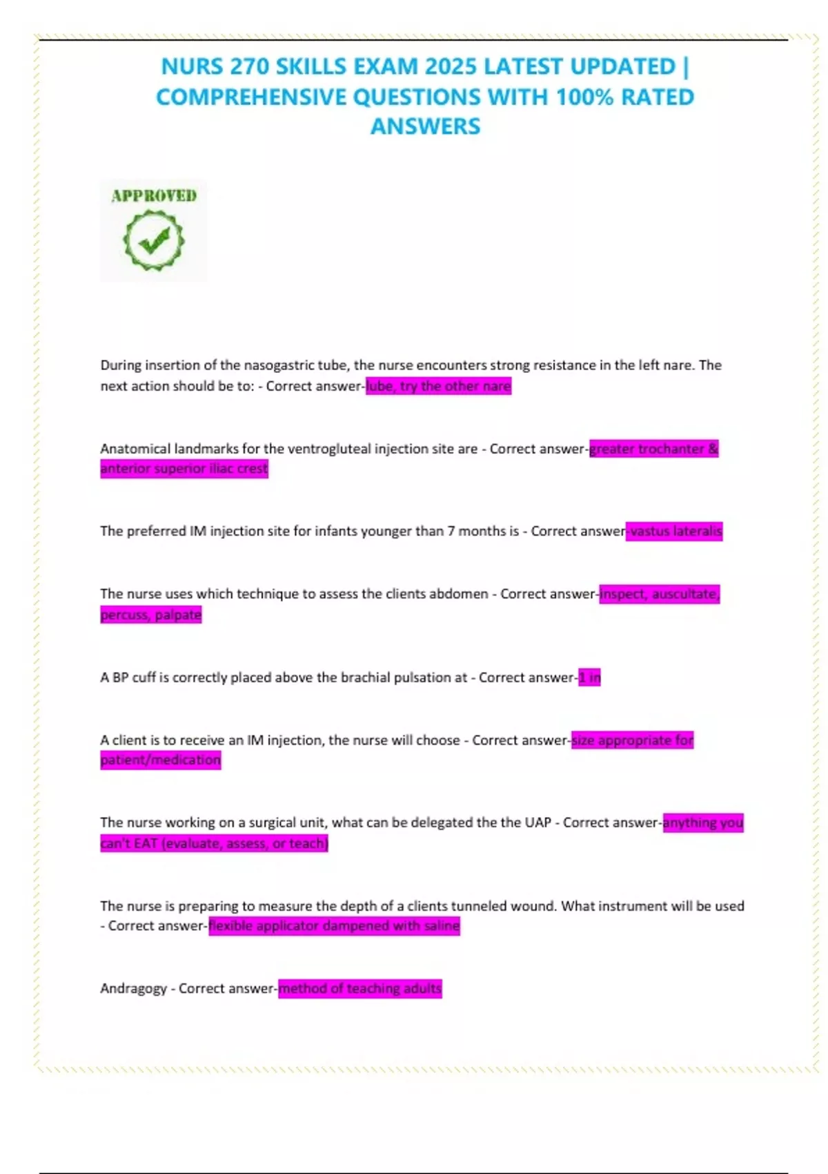 , NURS 270 SKILLS EXAM 2025 LATEST UPDATED |
