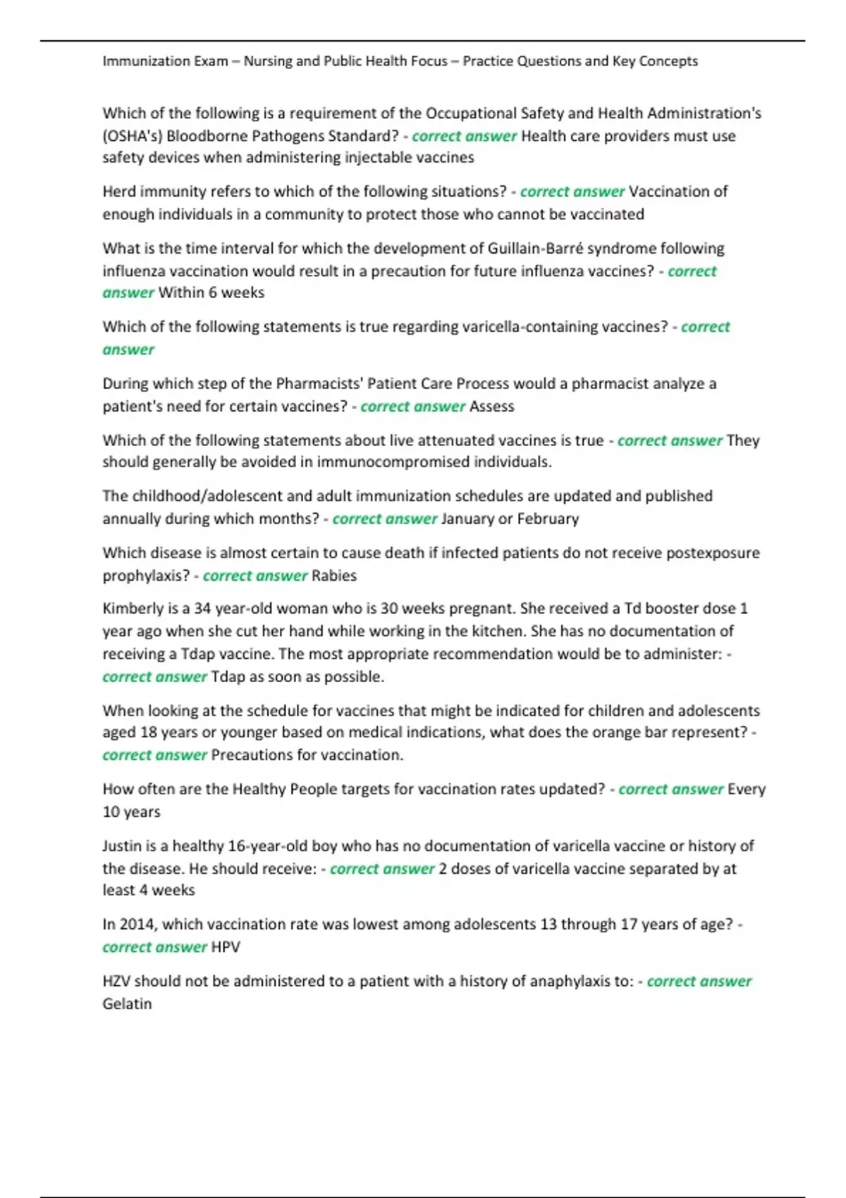 , Immunization Exam – Nursing and Public Health Focus – Practice Questions and Key Concepts
