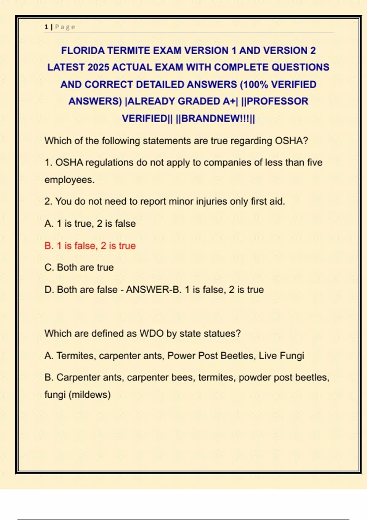 FLORIDA TERMITE EXAM VERSION 1 AND VERSION 2