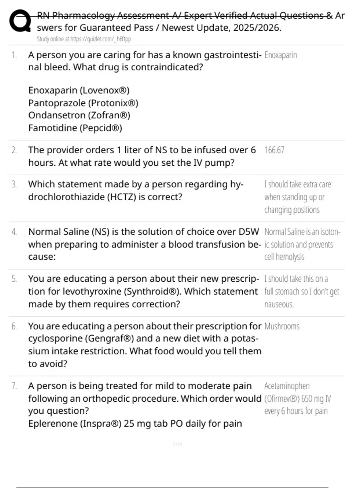 , RN Pharmacology Assessment-A/ Expert Verified Actual Questions & An