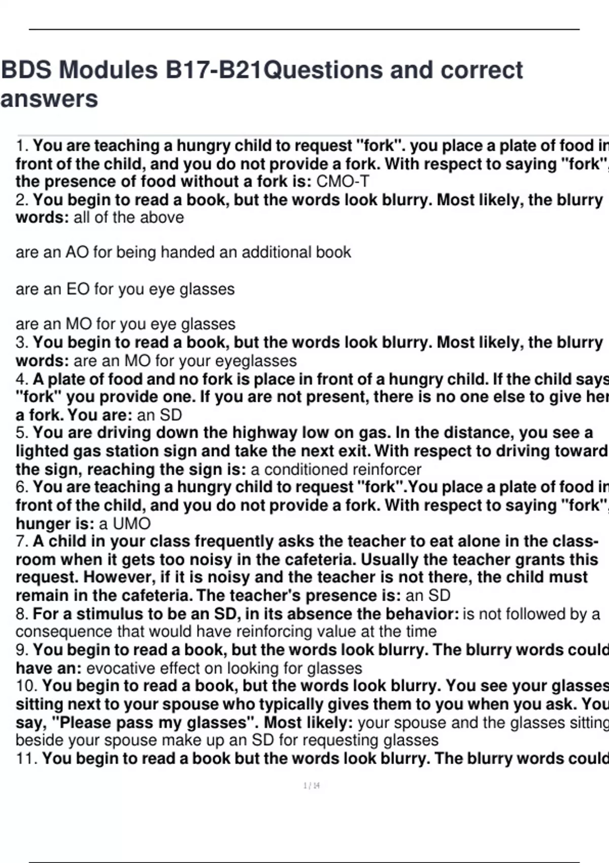 1. You are teaching a hungry child to request "fork". you place a plate of food in