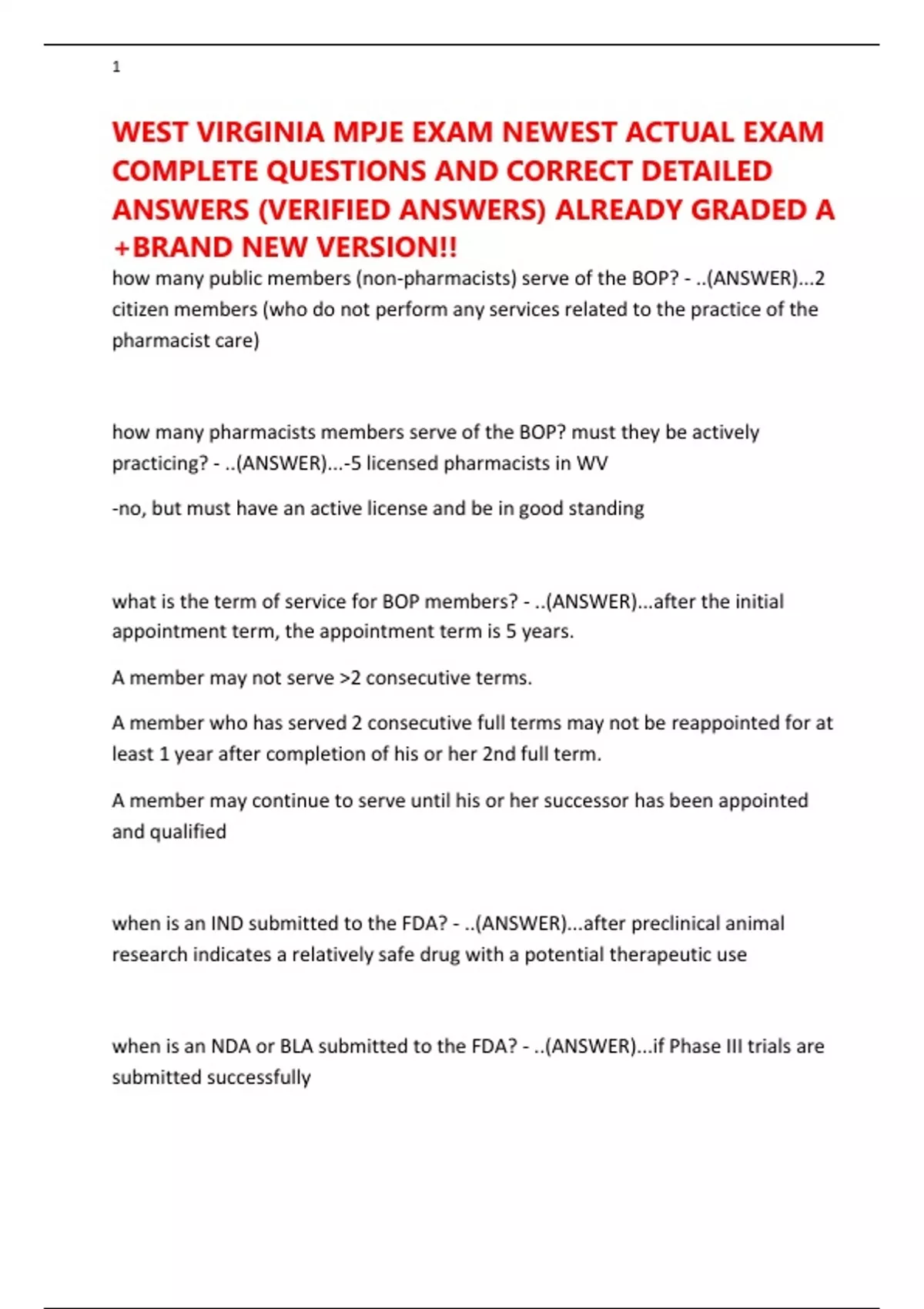 WEST VIRGINIA MPJE EXAM NEWEST ACTUAL EXAM