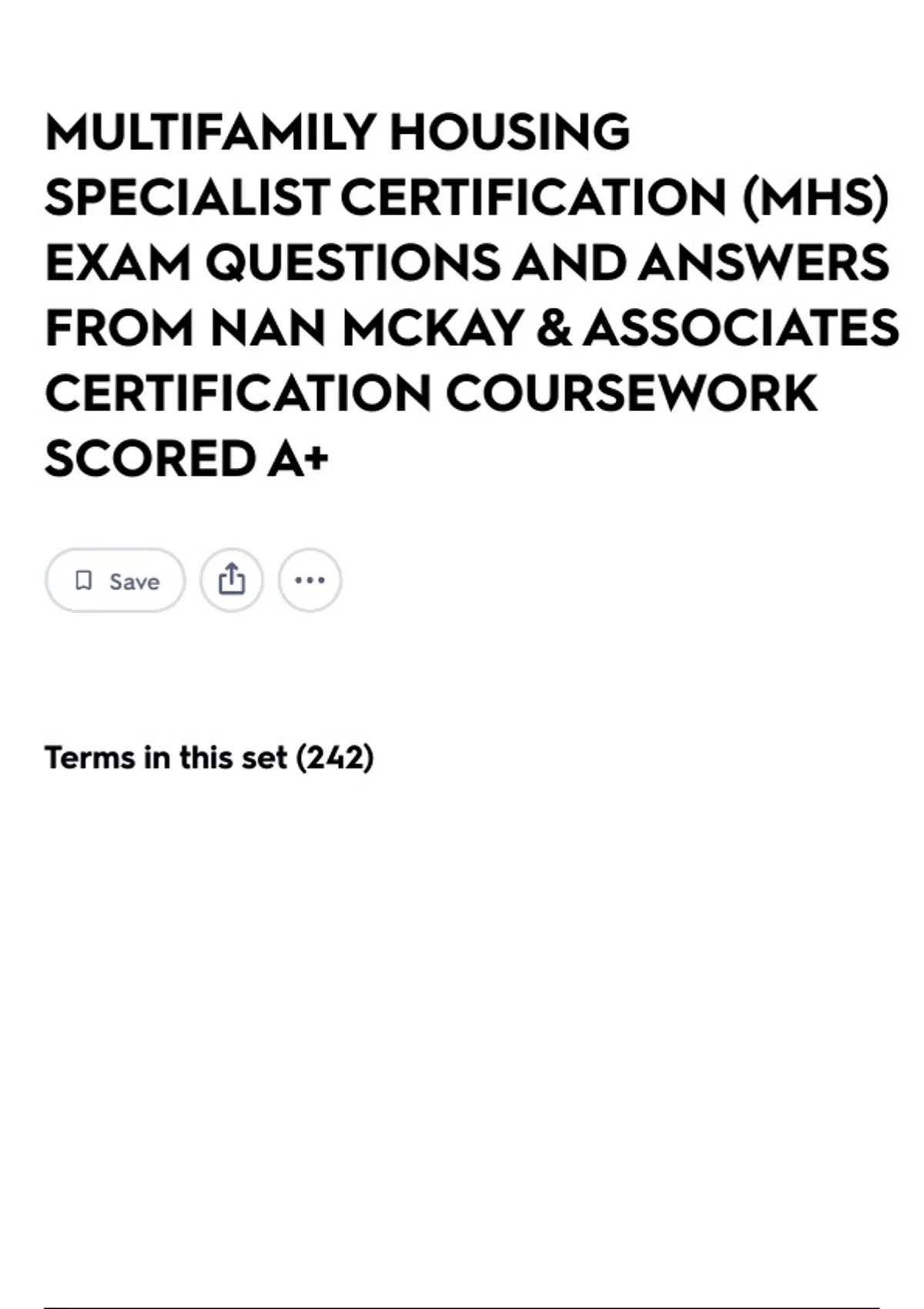 MULTIFAMILY HOUSING SPECIALIST CERTIFICATION (MHS) EXAM QUESTIONS AND ANSWERS FROM NAN MCKAY & ASSOCIATES CERTIFICATION COURSEWORK SCORED A+