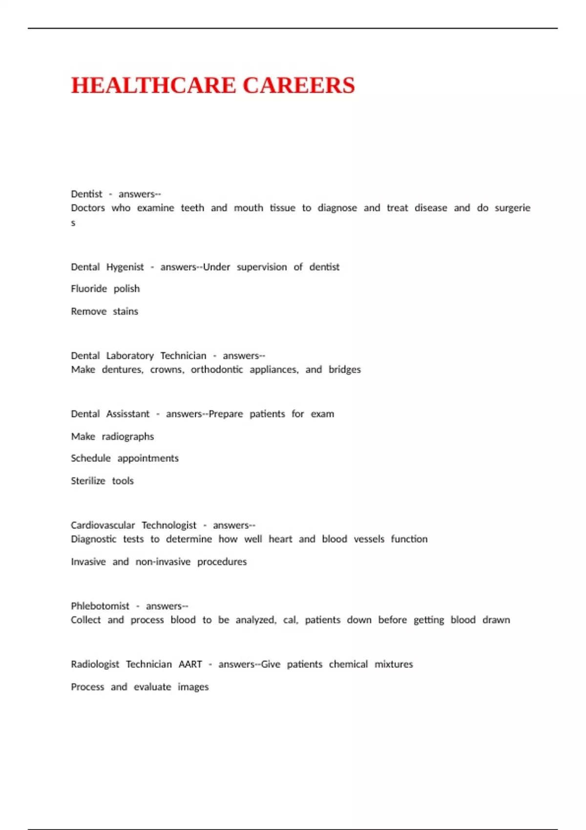 Exam of 10 pages for the course HEALTH CARE CAREERS at HEALTH CARE CAREERS (HEALTHCARE CAREERS)