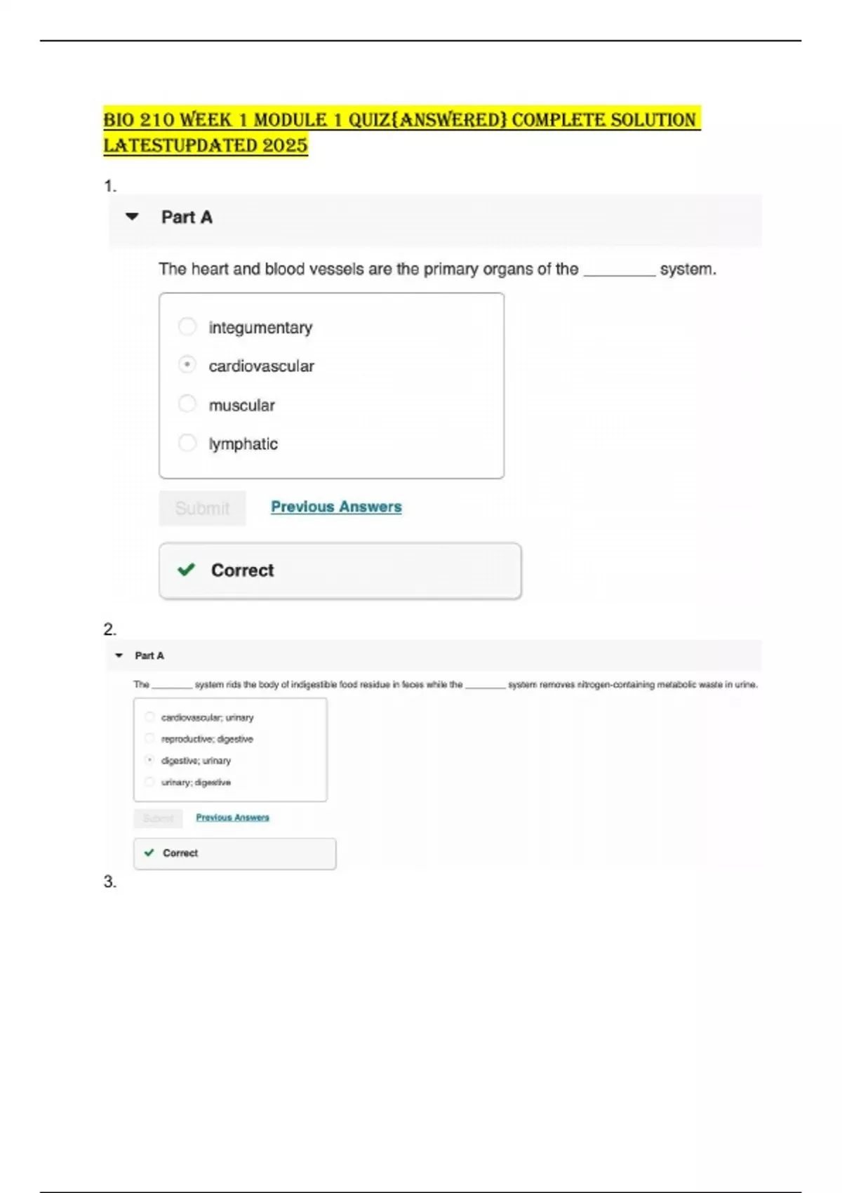 BIO 210 WEEK 1 MODULE 1 QUIZ{ANSWERED} COMPLETE SOLUTION LATESTUPDATED 2025 1. 2.
