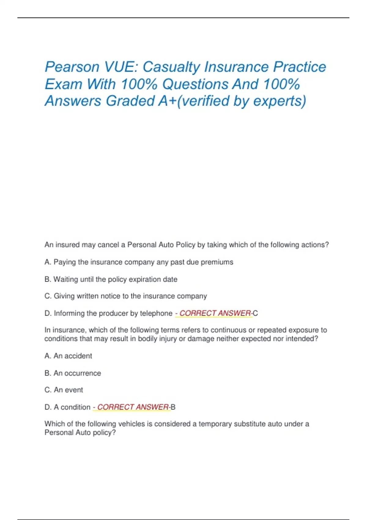 D. temporary short-term evidence of coverage - CORRECT ANSWER-D
