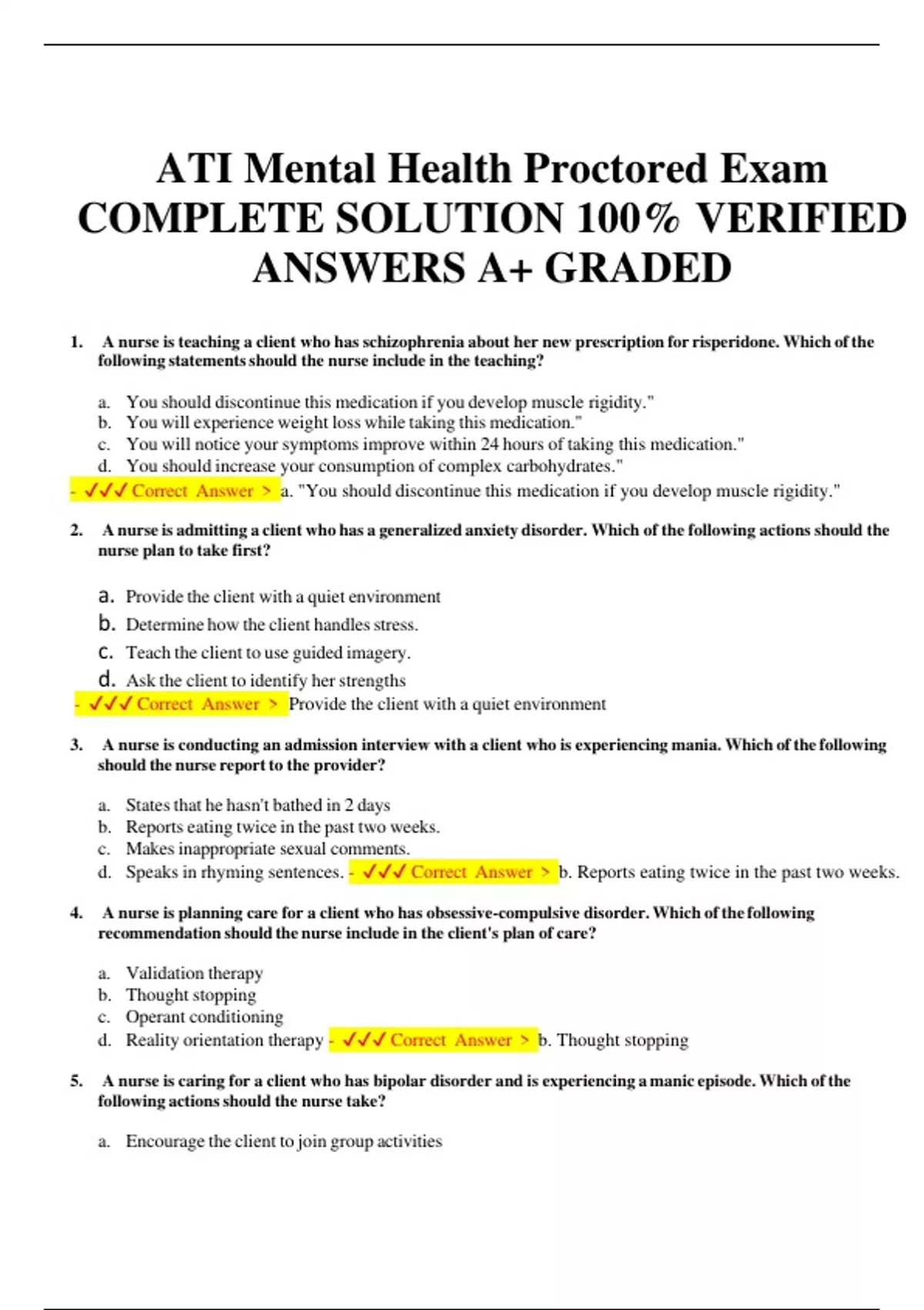 - ✔✔✔ Correct Answer > Provide the client with a quiet environment
