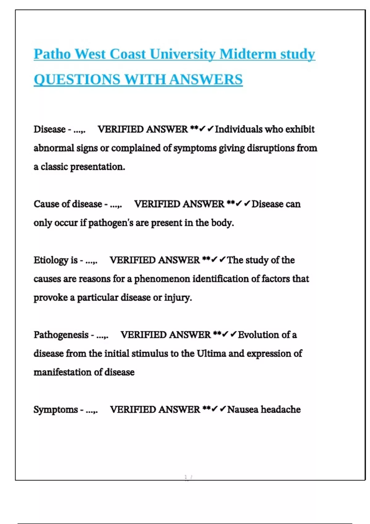 WCU PATHO FINAL EXAM WITH CORRECT ANSWERS