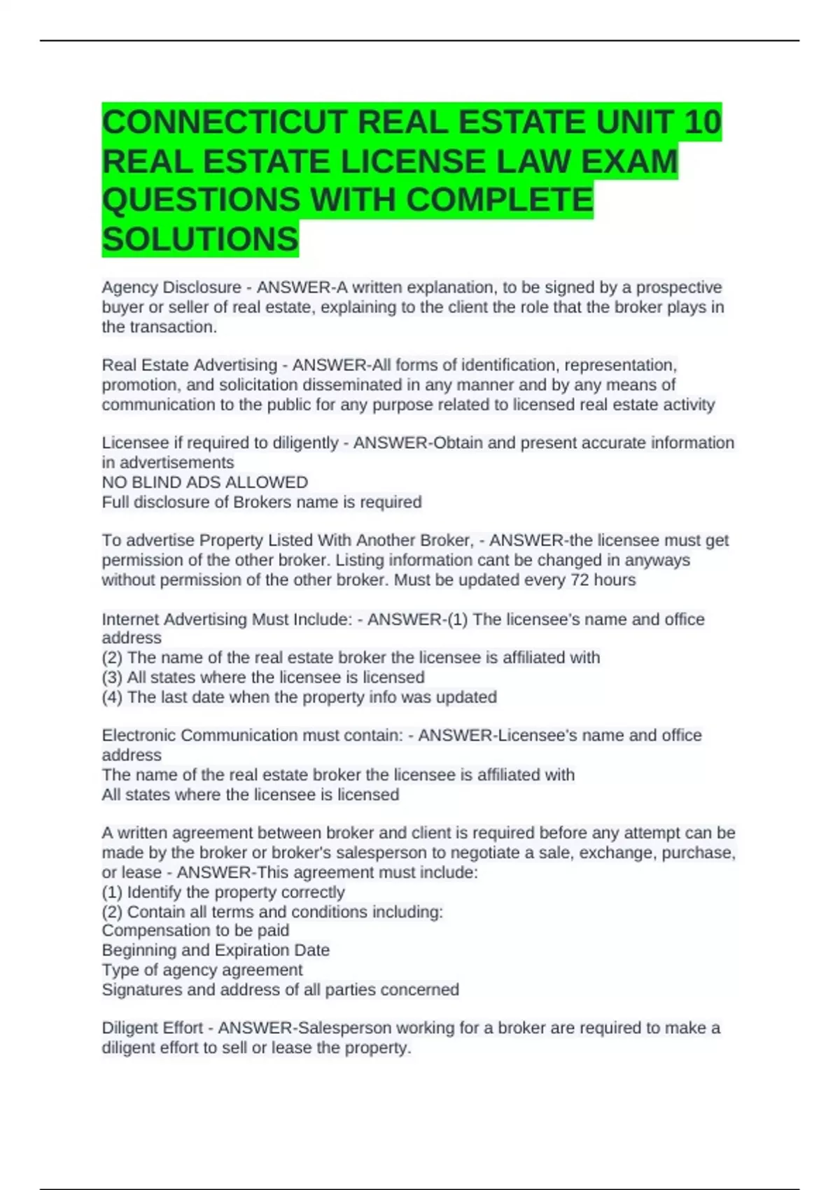 CONNECTICUT REAL ESTATE UNIT 10
