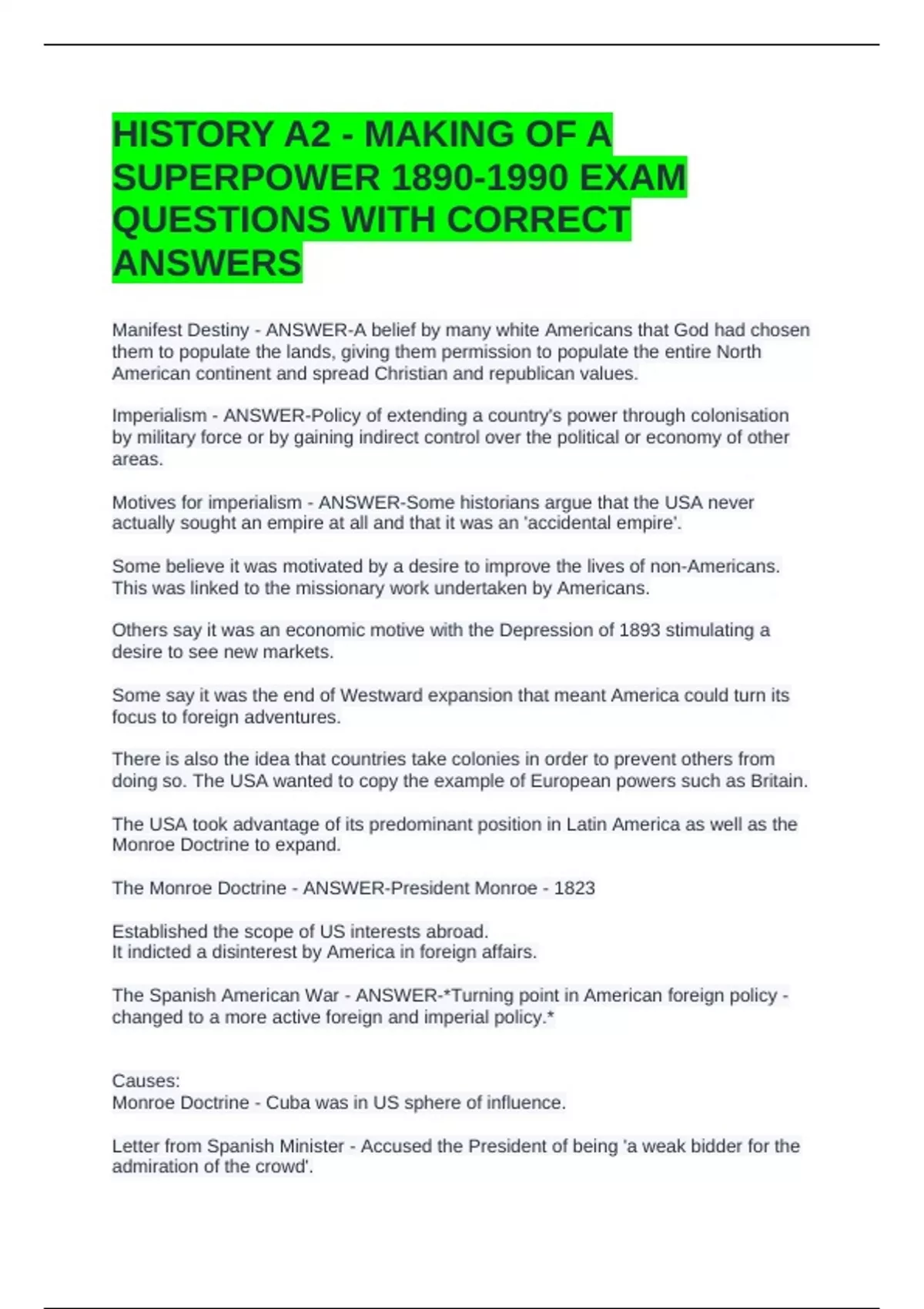HISTORY A2 - MAKING OF A SUPERPOWER EXAM QUESTIONS WITH CORRECT ANSWERS