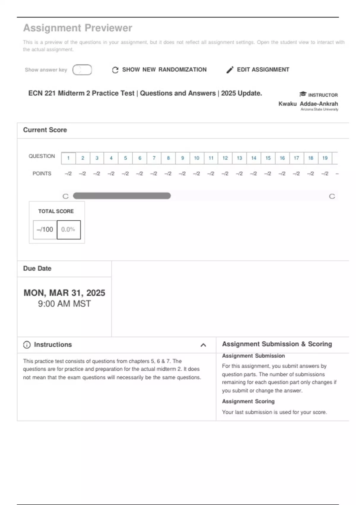 Show answer key SHOW NEW RANDOMIZATION EDIT ASSIGNMENT