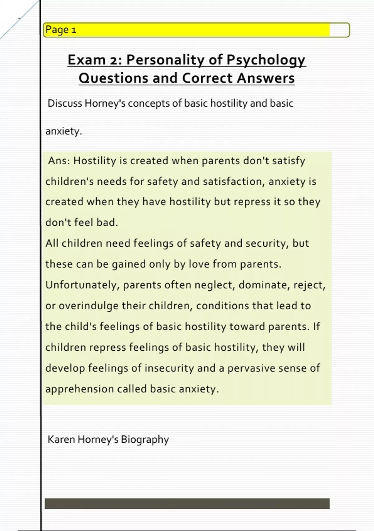 Ans: Horney's work was very relational - how we relate