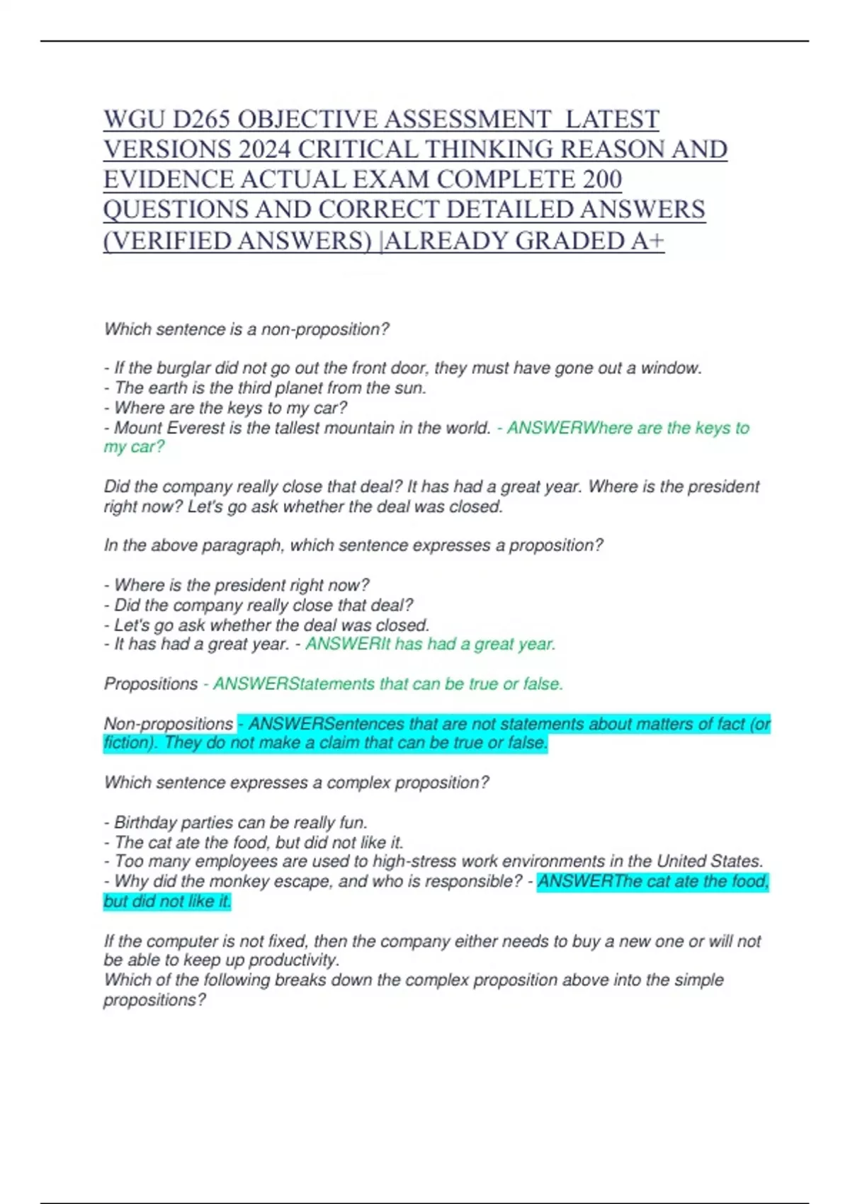 WGU D265 CRITICAL THINKING REASON AND EVIDENCE OBJECTIVE ASSESSMENT EXAM LATEST 2024