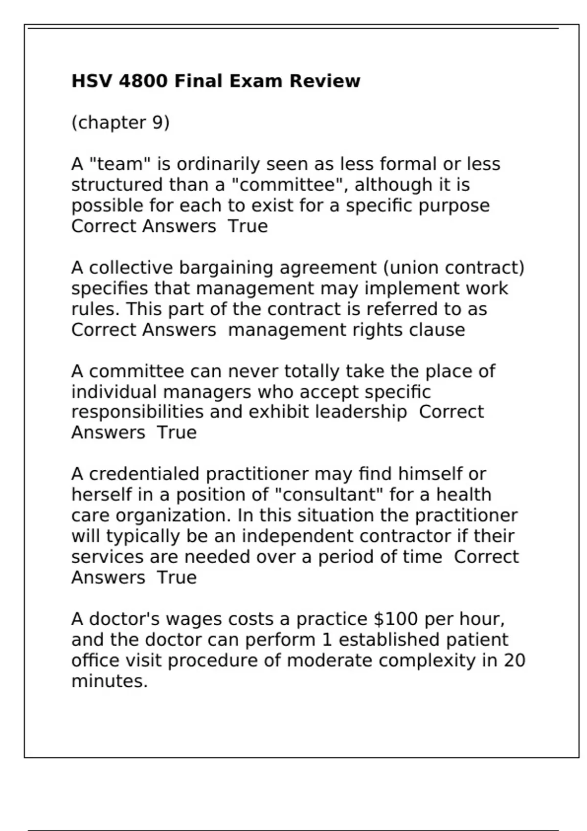 HSV 4800 Final Exam Review
