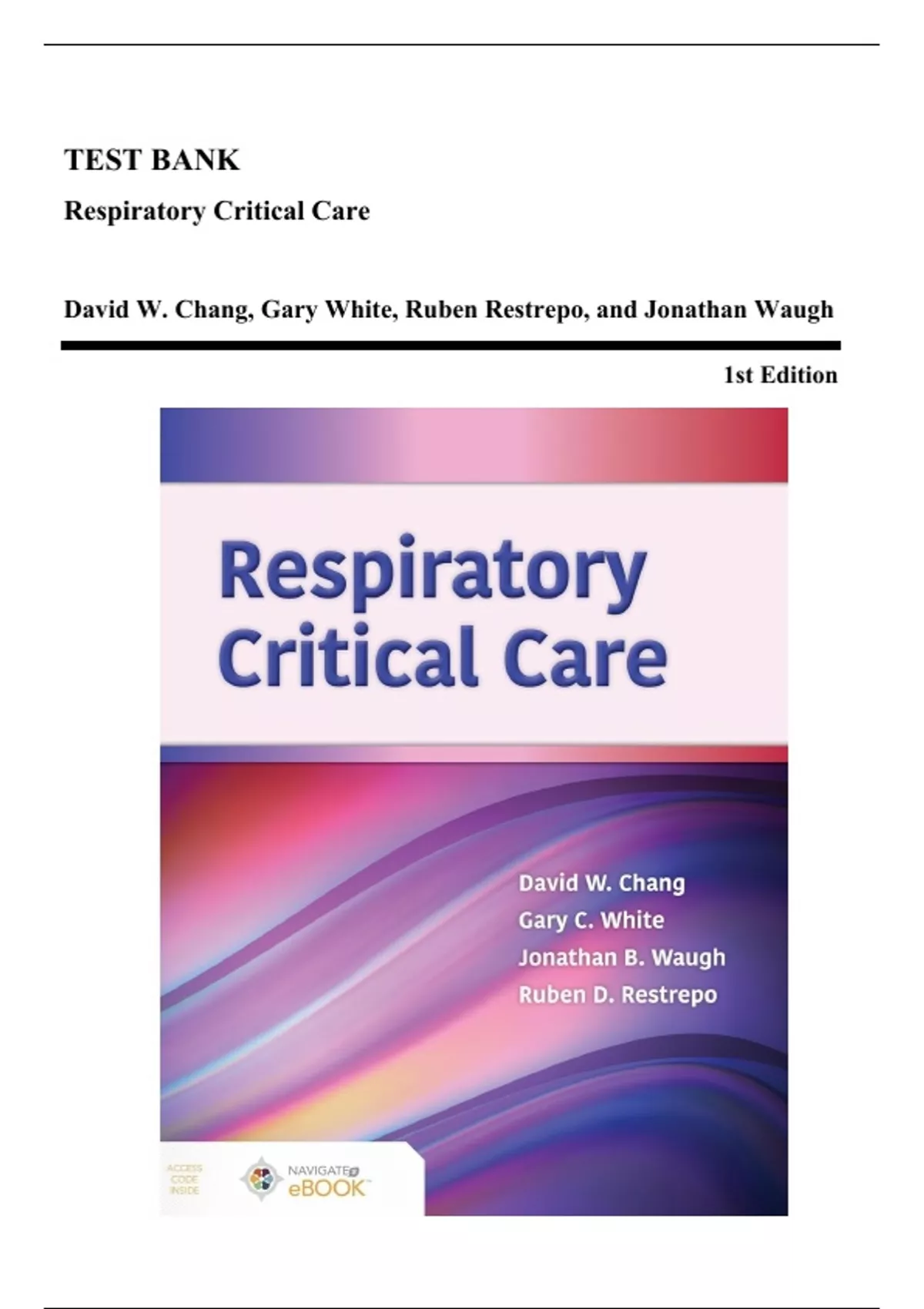 Test Bank - Respiratory Critical Care, 1st Edition (Chang, 2021), Chapter 1-15 | All Chapters