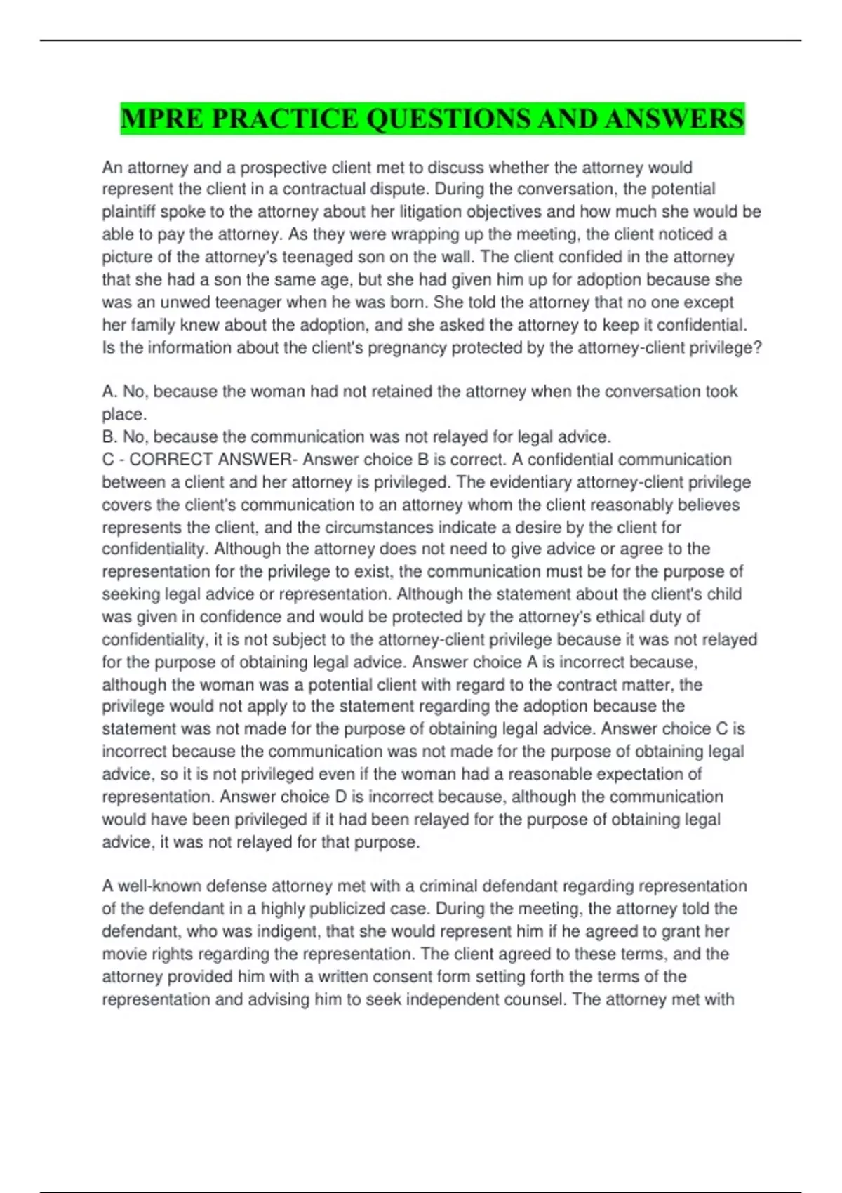 Yes, because the attorney - CORRECT ANSWER- Answer choice C is correct. An