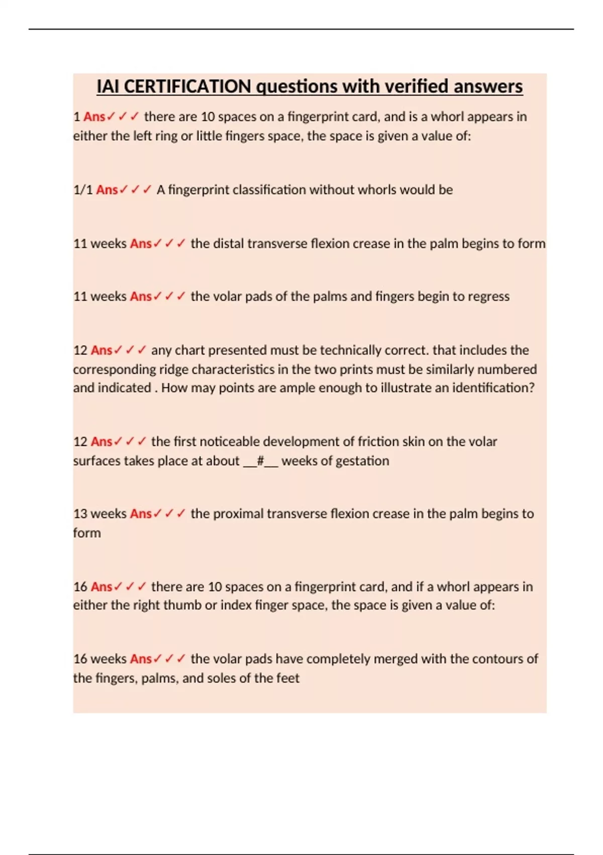 32/32 Ans✓✓✓ A fingerprint classification with all whorls would be