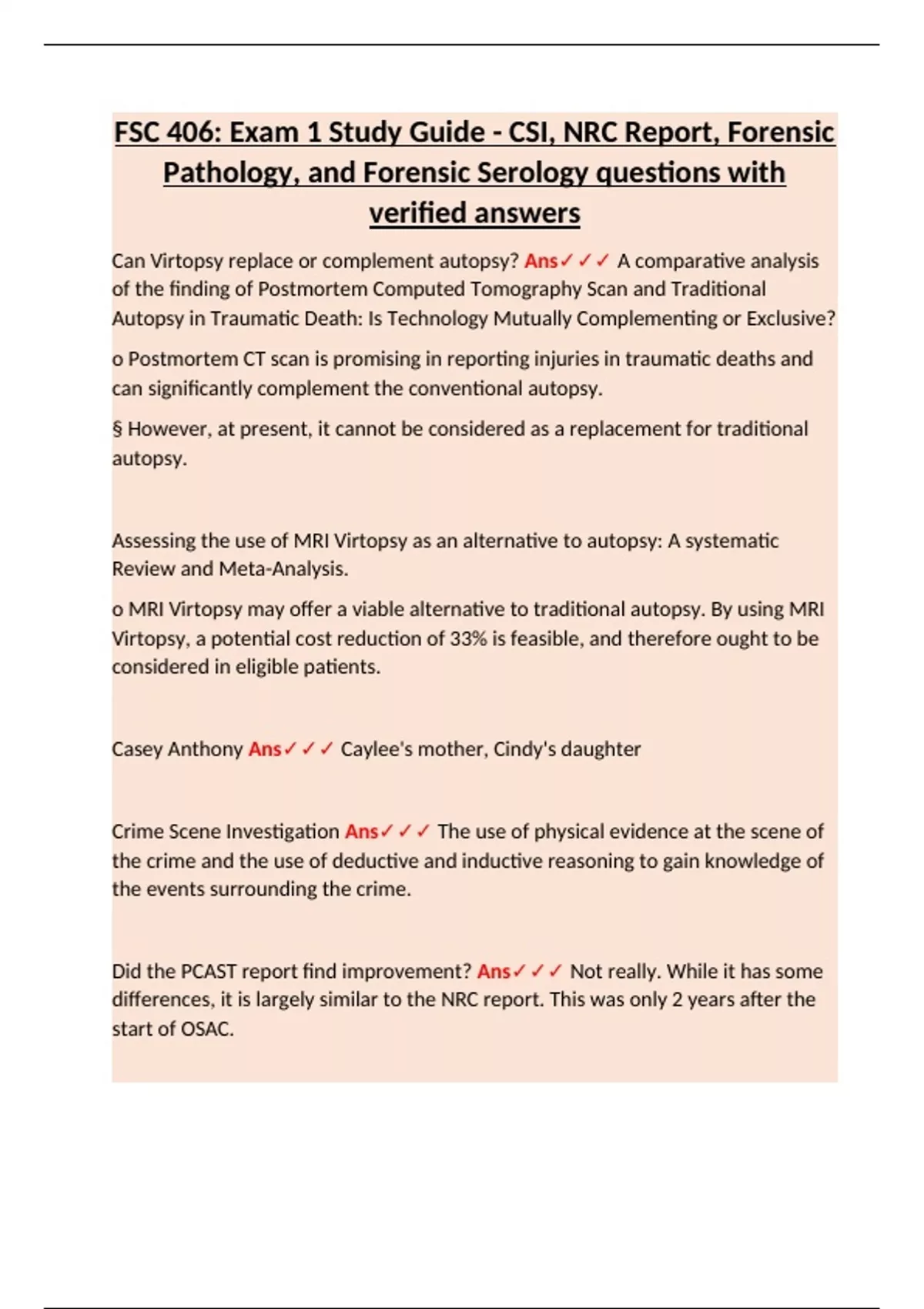 Crime Scene Investigation Ans✓✓✓ The use of physical evidence at the scene of