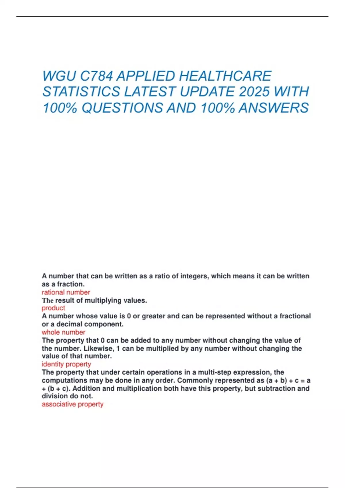 WGU C784 APPLIED HEALTHCARE