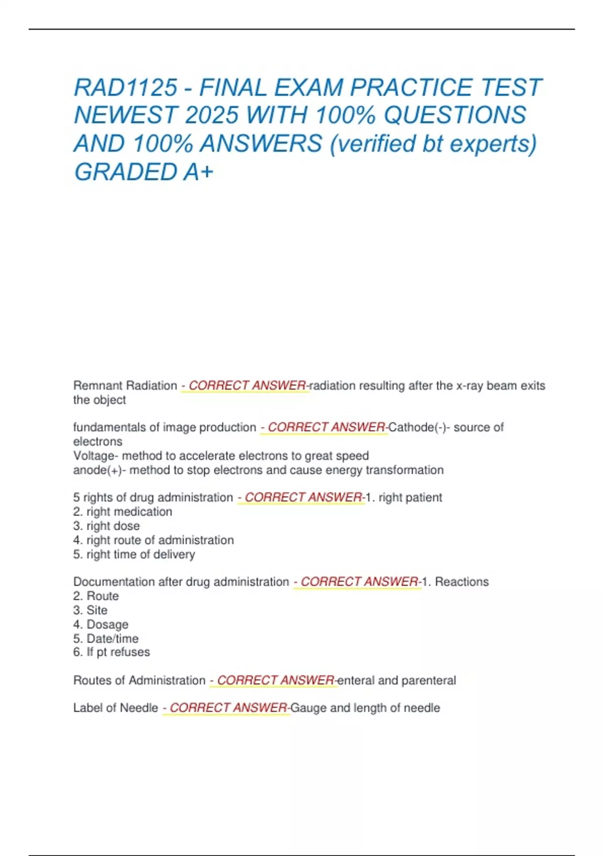 RAD1125 - FINAL EXAM PRACTICE TEST