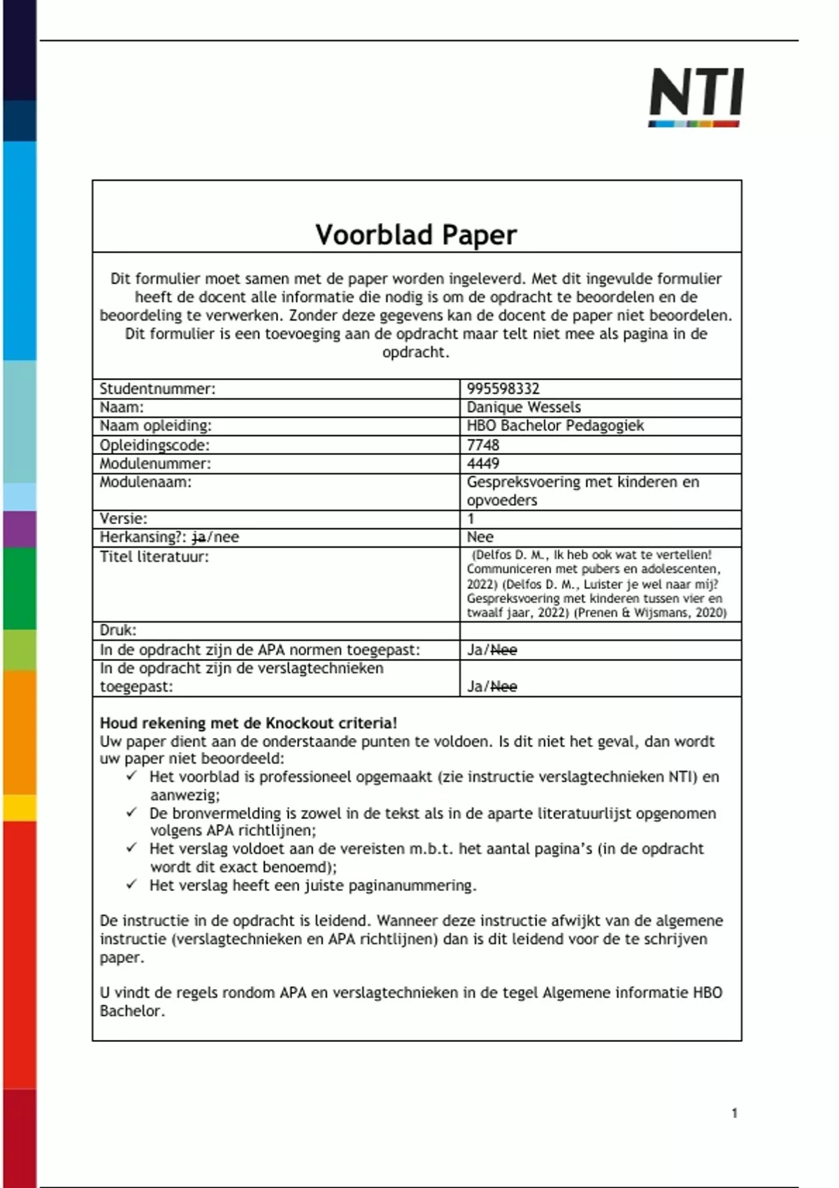 beoordeling te verwerken. Zonder deze gegevens kan de docent de paper niet beoordelen.