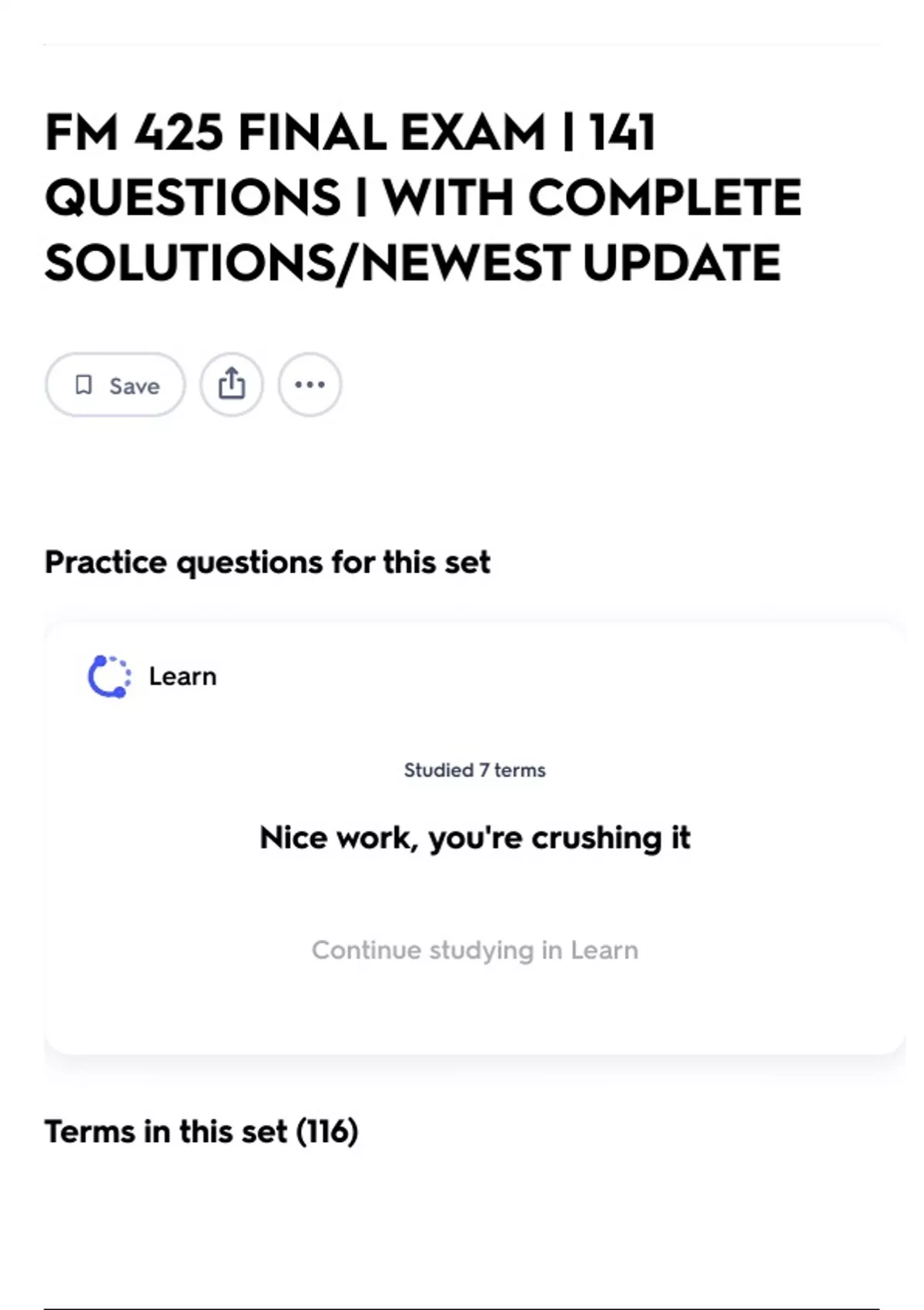FM 425 FINAL EXAM | 141 QUESTIONS | WITH COMPLETE SOLUTIONS/NEWEST UPDATE