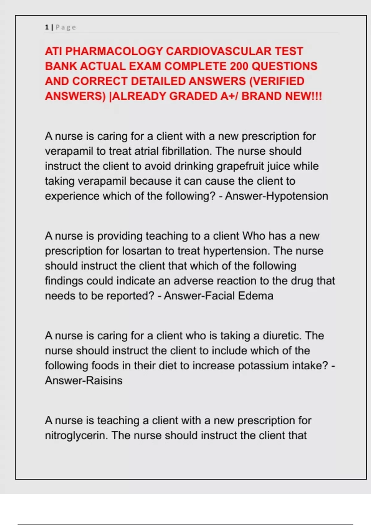 ATI PHARMACOLOGY CARDIOVASCULAR TEST BANK ACTUAL EXAM COMPLETE 200 QUESTIONS AND CORRECT DETAILED ANSWERS (VERIFIED ANSWERS) |ALREADY GRADED A+/ BRAND NEW!!!