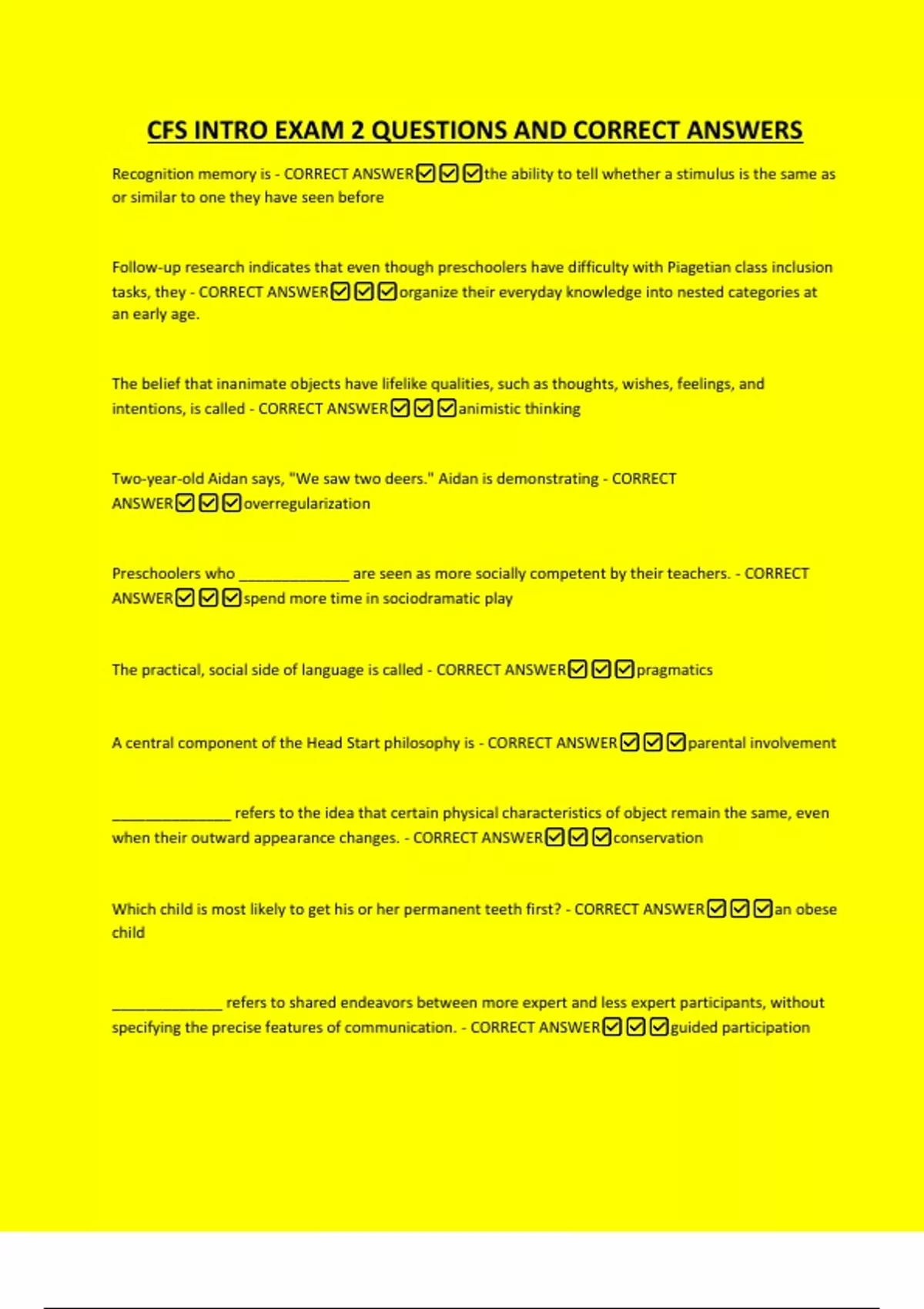 CFS INTRO EXAM 2 QUESTIONS AND CORRECT ANSWERS