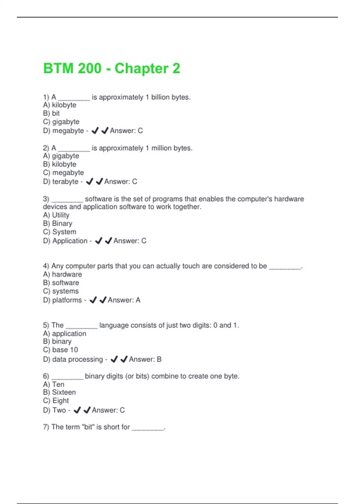 D) megabyte - ✔️✔️Answer: C