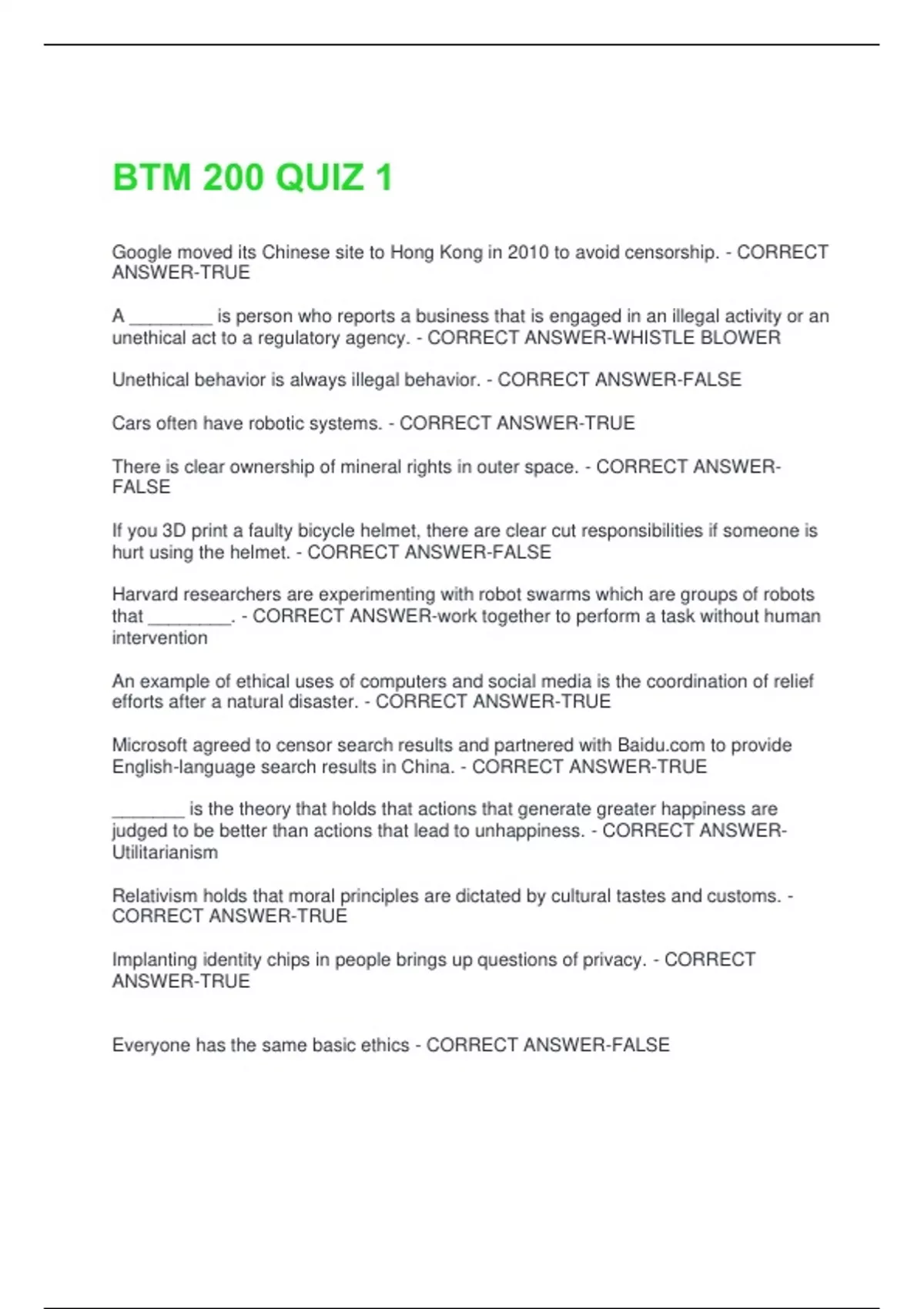 Unethical behavior is always illegal behavior. - CORRECT ANSWER-FALSE