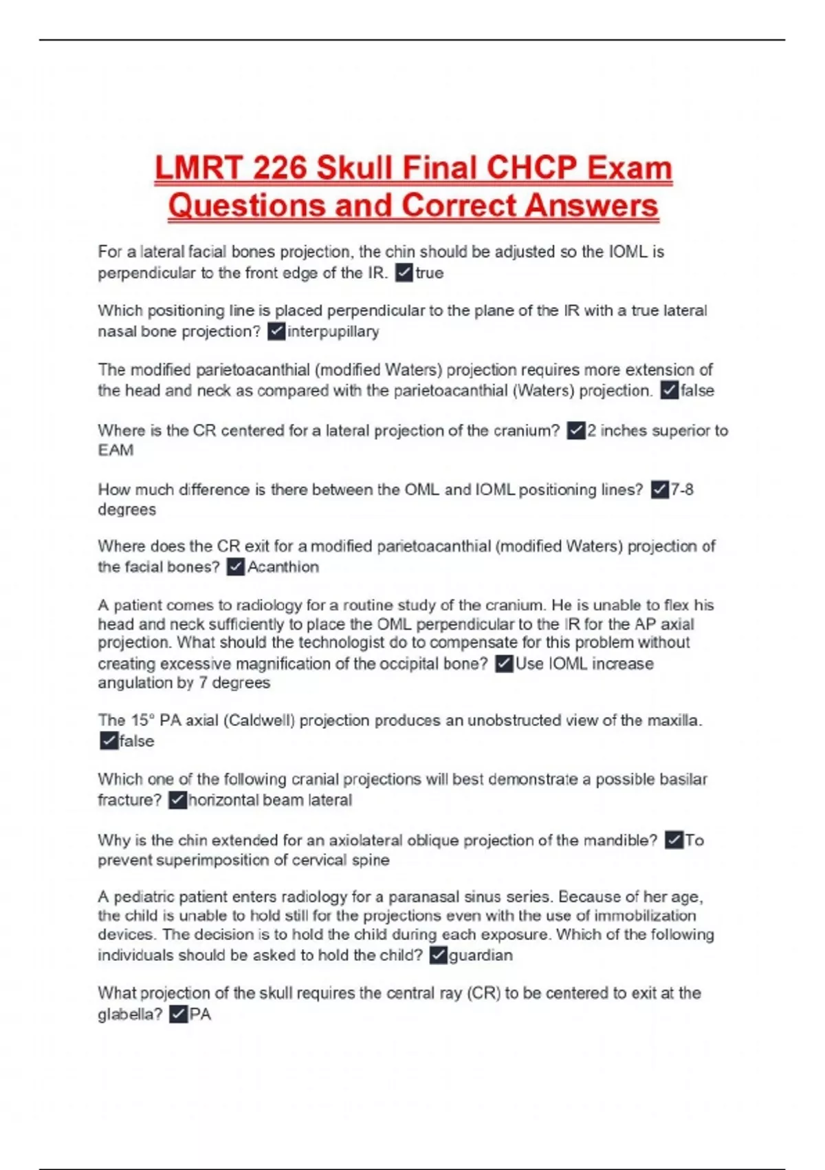 lmrt 226 skull final chcp exam questions and corre