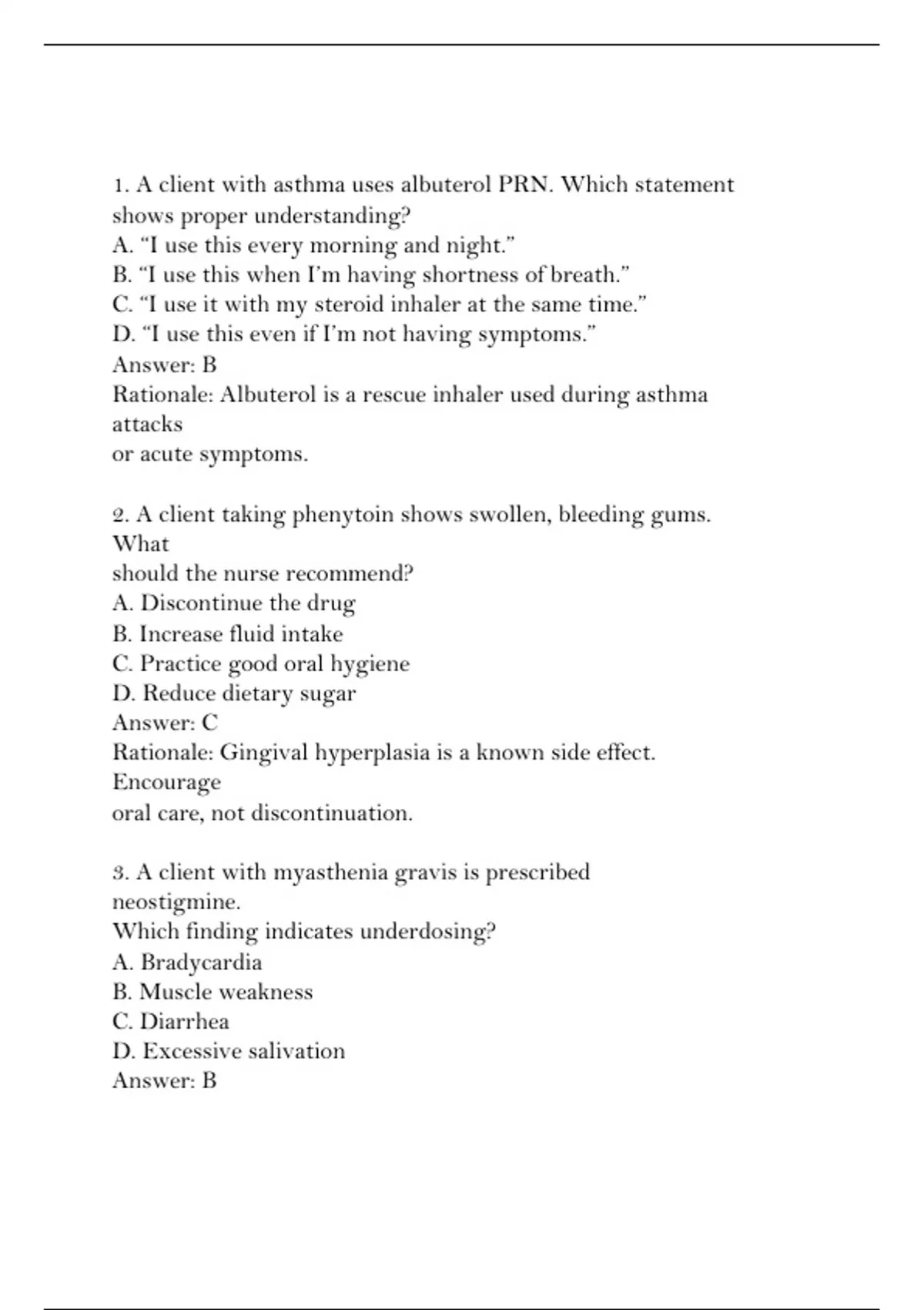 2. A client taking phenytoin shows swollen, bleeding gums.