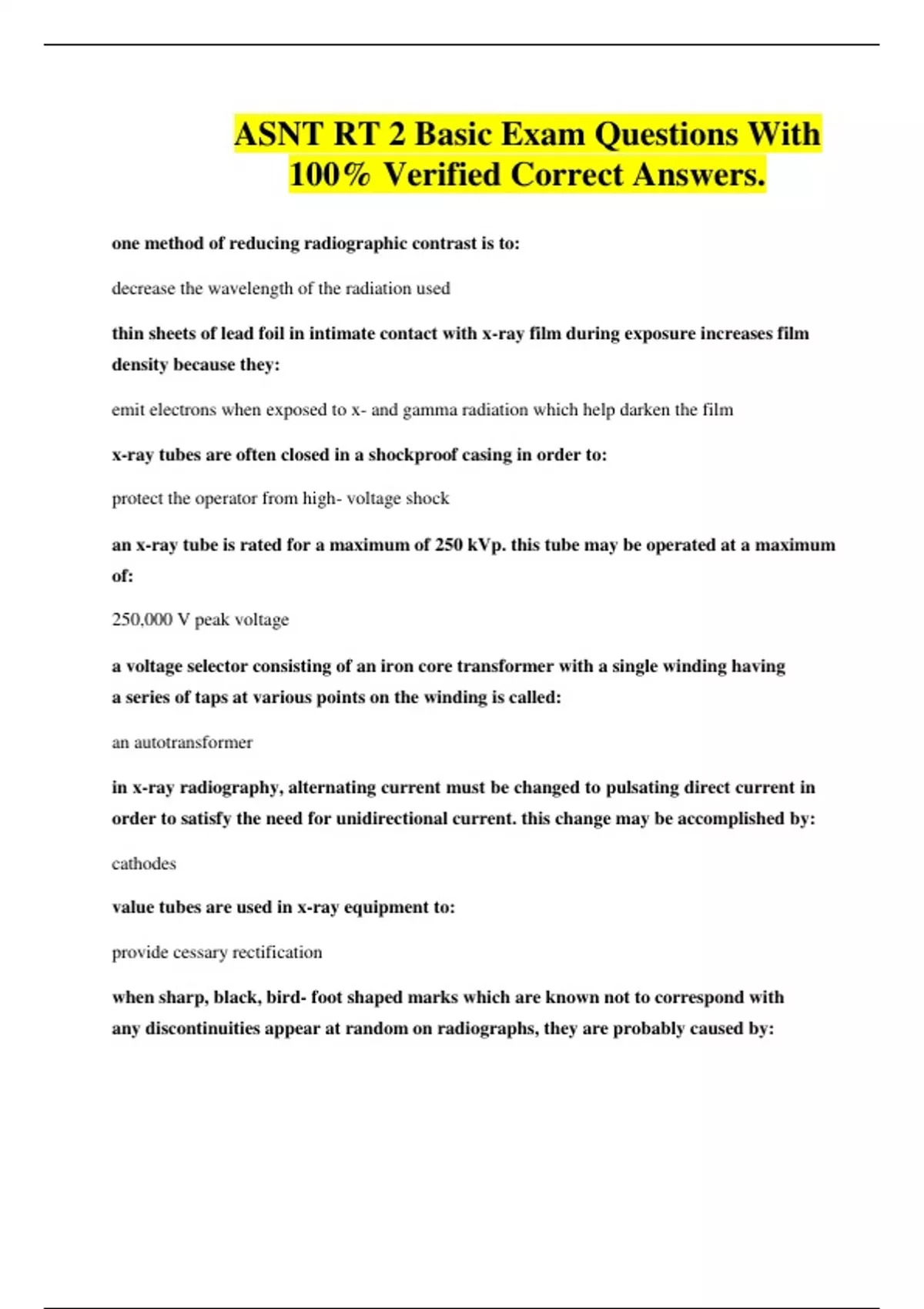 ASNT RT 2 Basic Exam Questions With