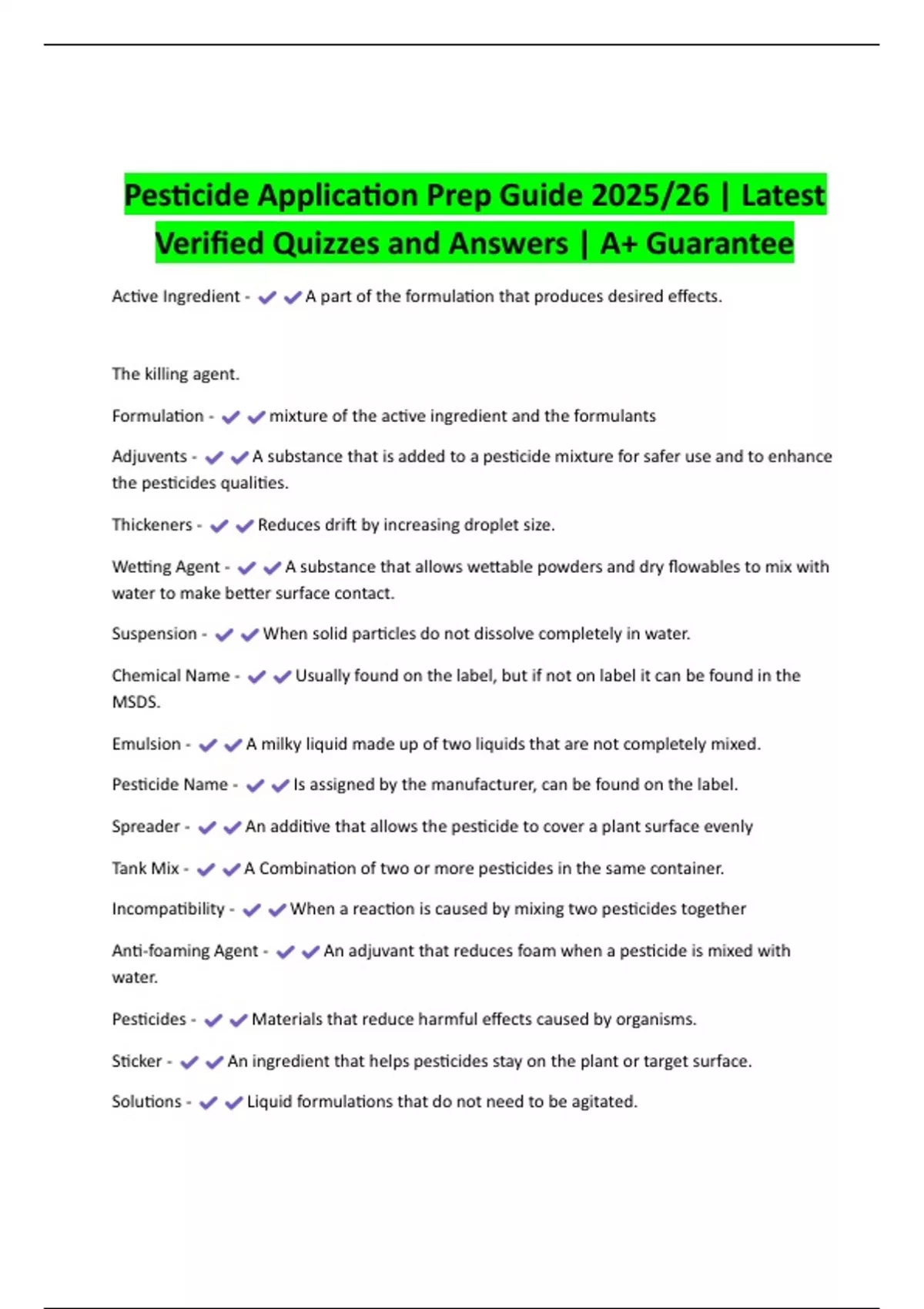 Pesticide Application Prep Guide 2025/26 | Latest Verified Quizzes and Answers | A+ Guarantee