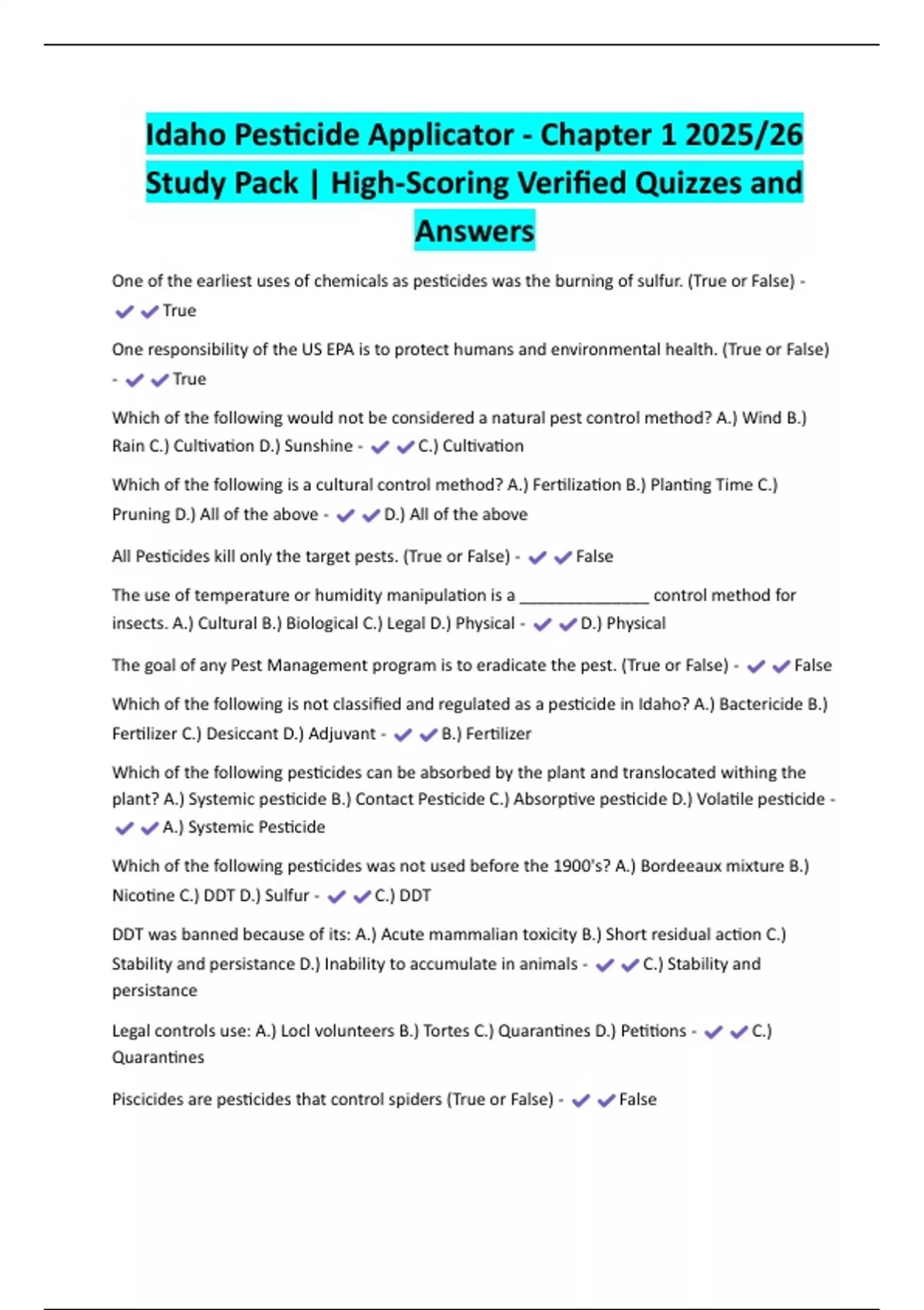 Study Pack | High-Scoring Verified Quizzes and