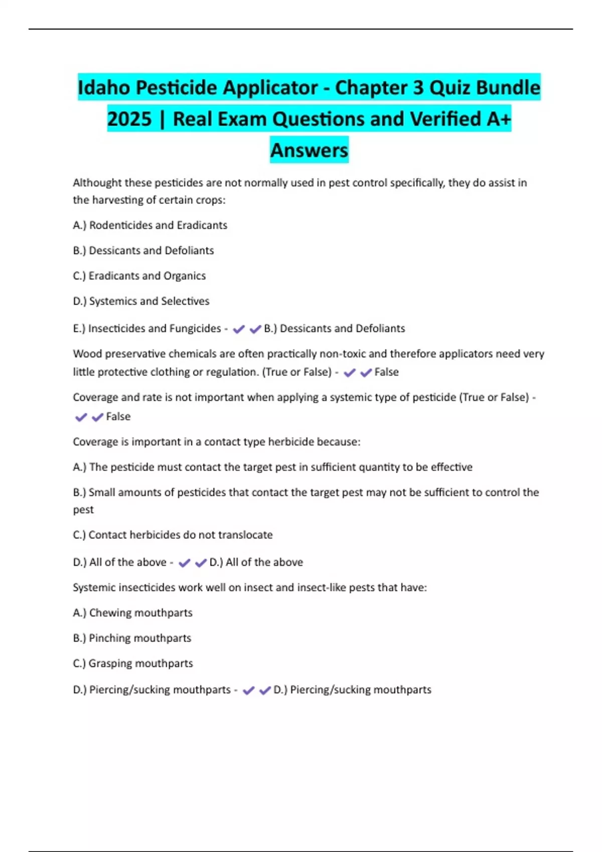 Idaho Pesticide Applicator - Chapter 3 Quiz Bundle 2025 | Real Exam Questions and Verified A+ Answers
